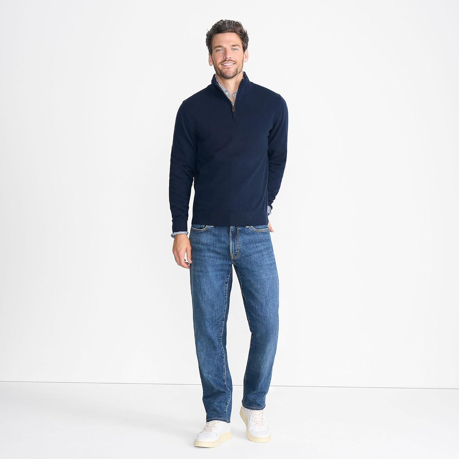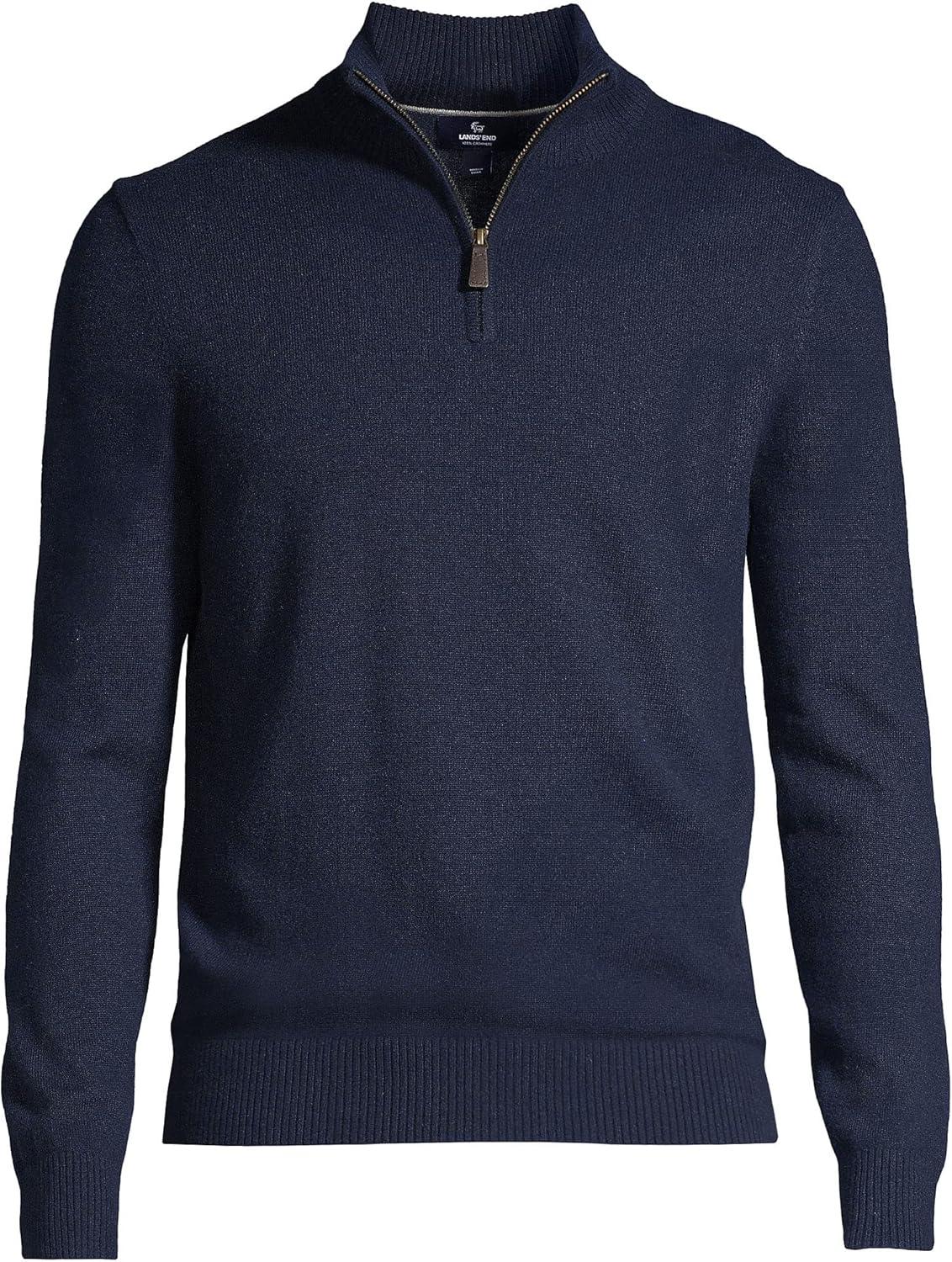 Lands’ End Men’s Fine Gauge Cashmere Quarter Zip(Radiant Navy)