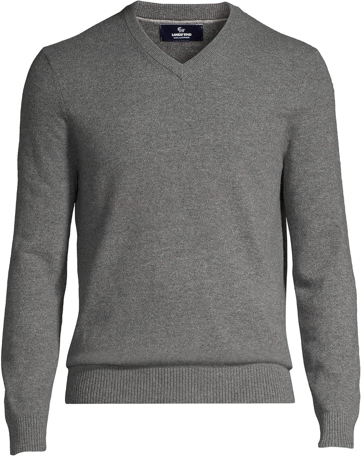 Lands’ End Men’s Fine Gauge Cashmere V-Neck Sweater(Charcoal Heather)