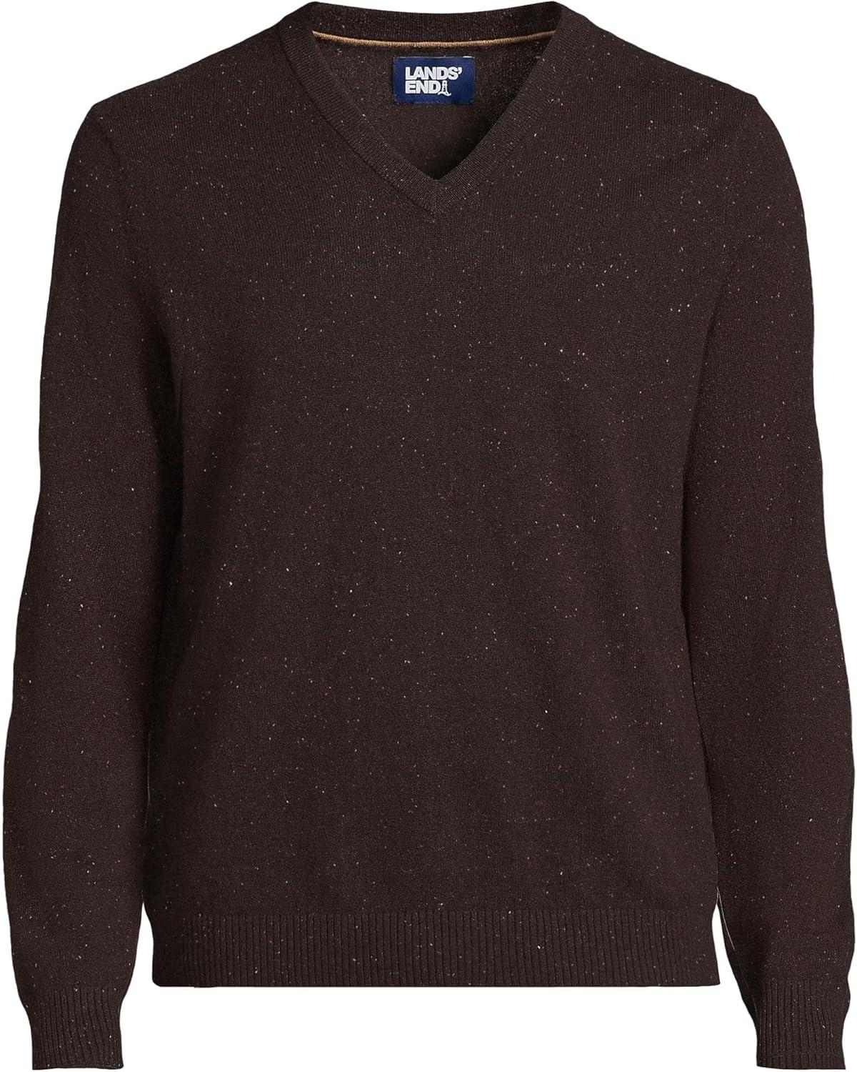 Lands’ End Men’s Fine Gauge Cashmere V-Neck Sweater(Warm Chocolate Donegal)