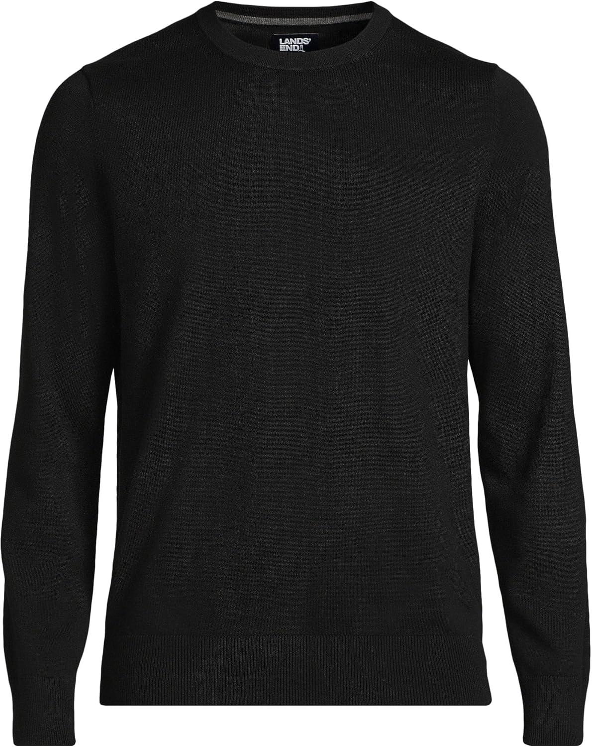 Lands’ End Men’s Fine Gauge Cotton Crew Neck Sweater(Black)