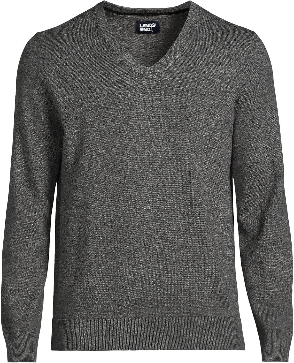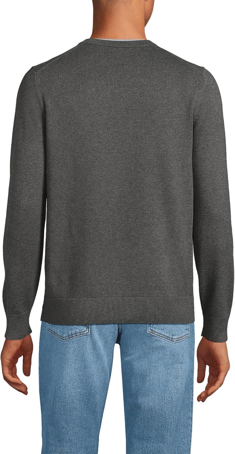 Lands’ End Men’s Fine Gauge Cotton V Neck Sweater(Charcoal Heather)