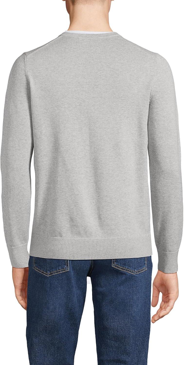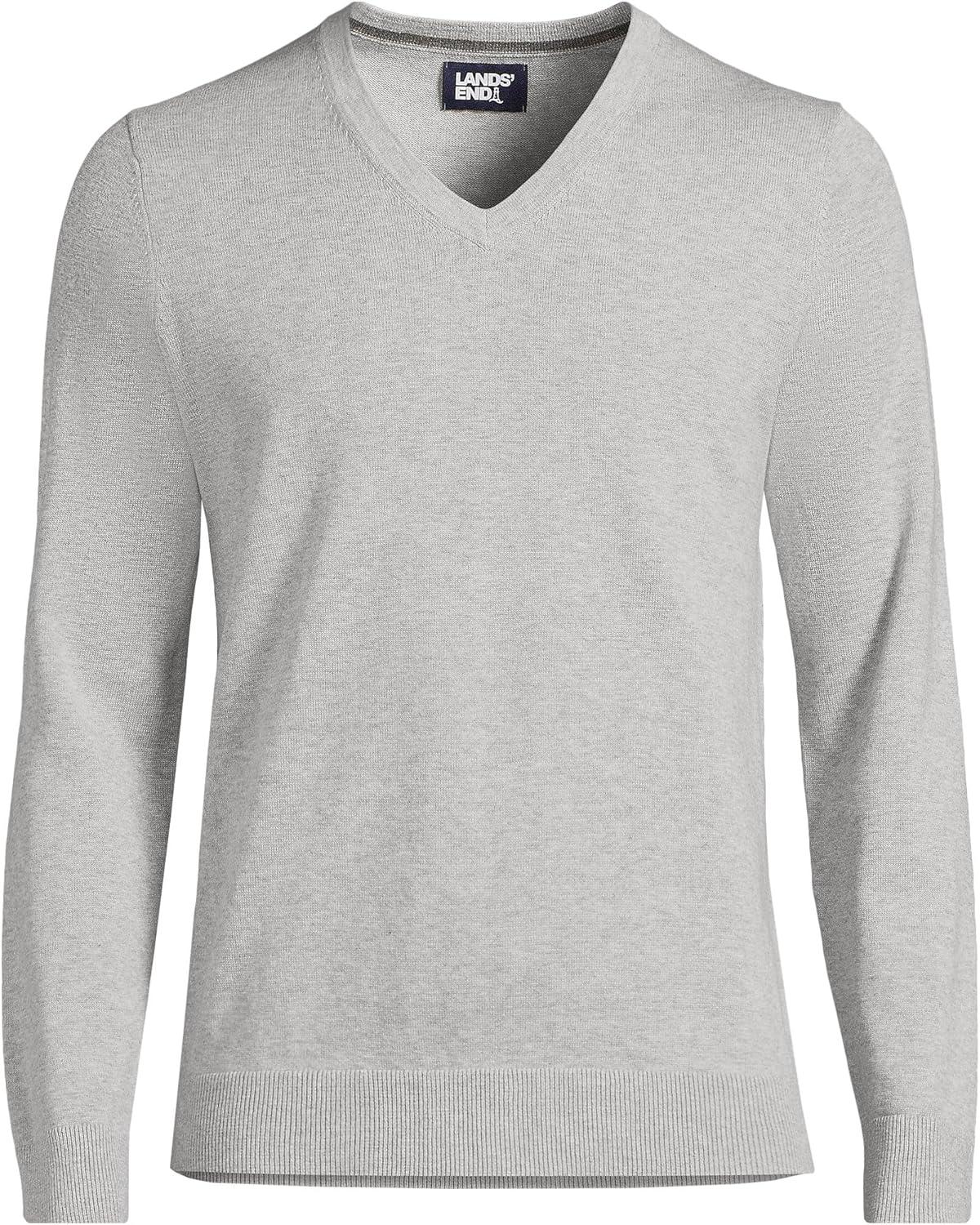 Lands’ End Men’s Fine Gauge Cotton V Neck Sweater(Gray Heather)