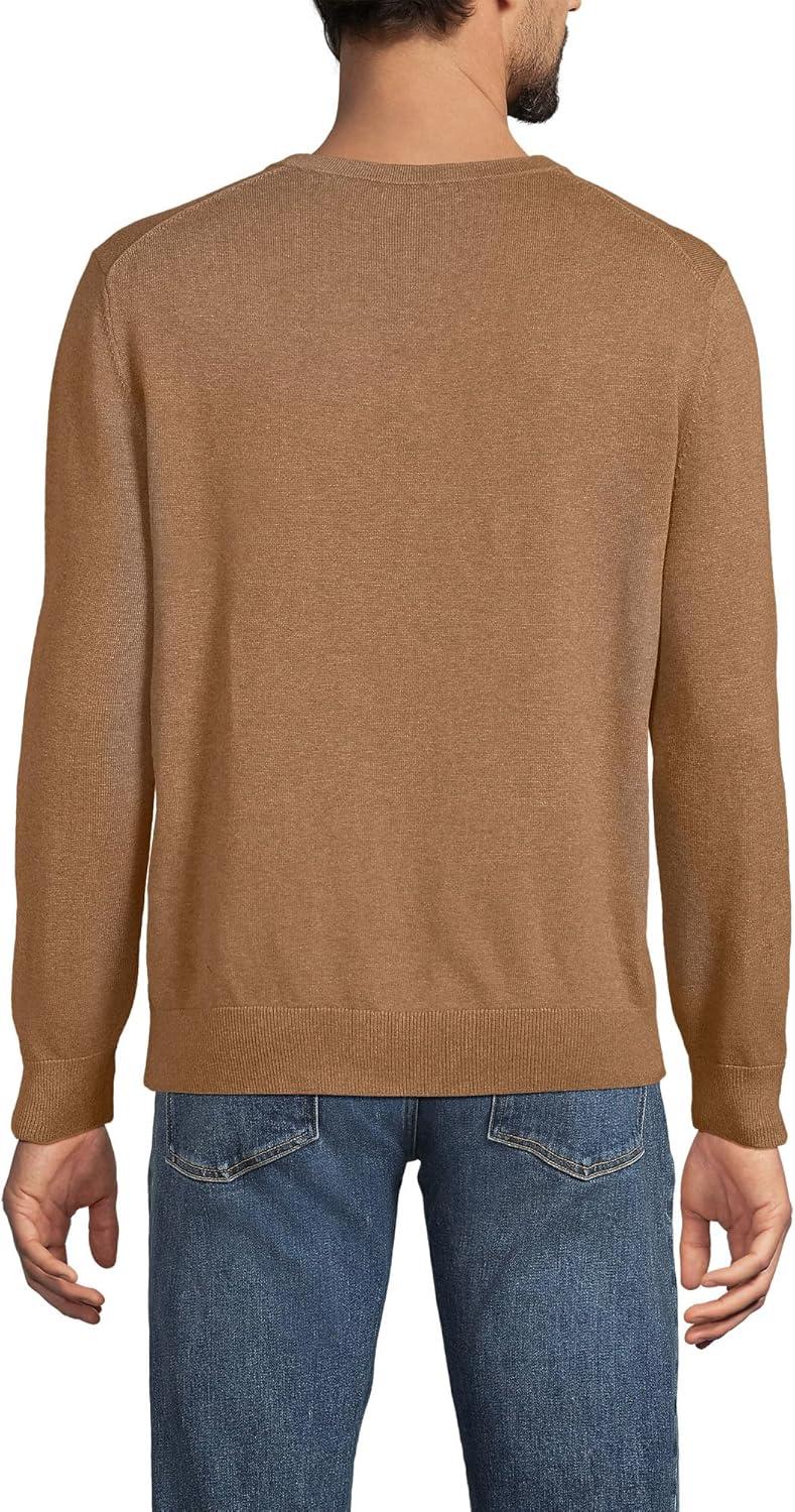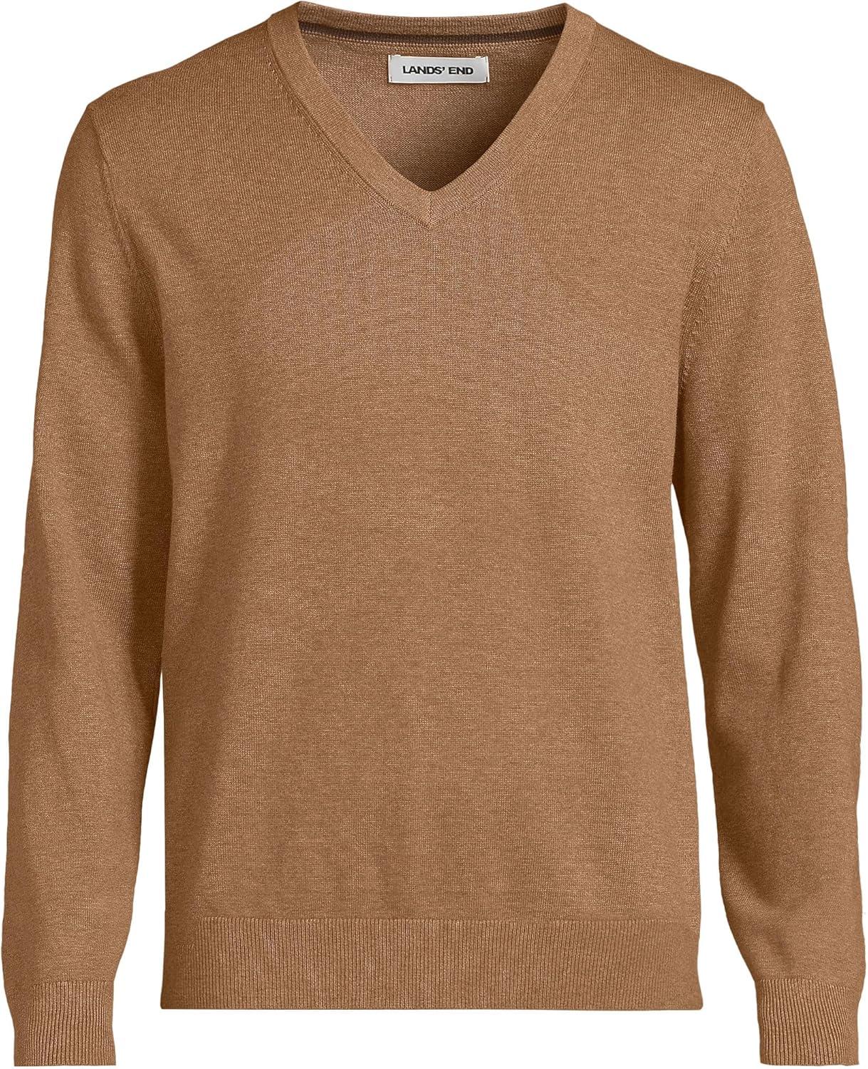 Lands’ End Men’s Fine Gauge Cotton V Neck Sweater(Soft Camel Brown Heather)