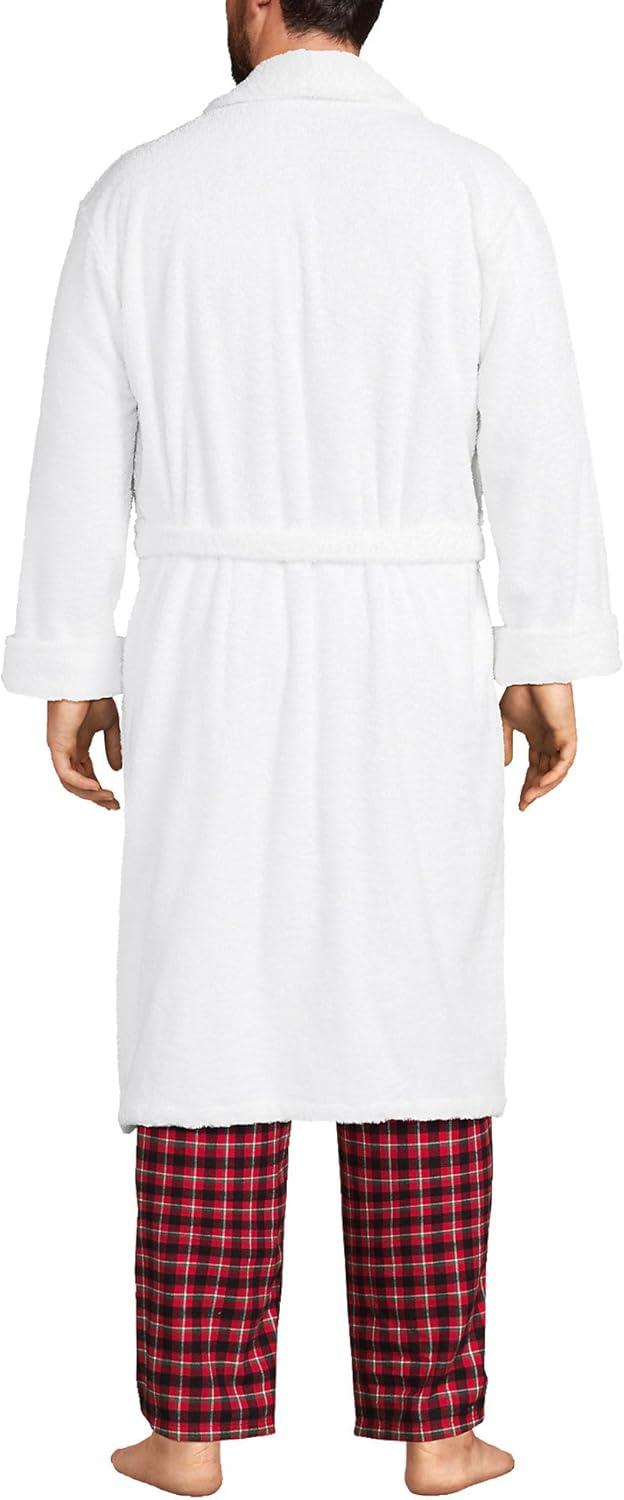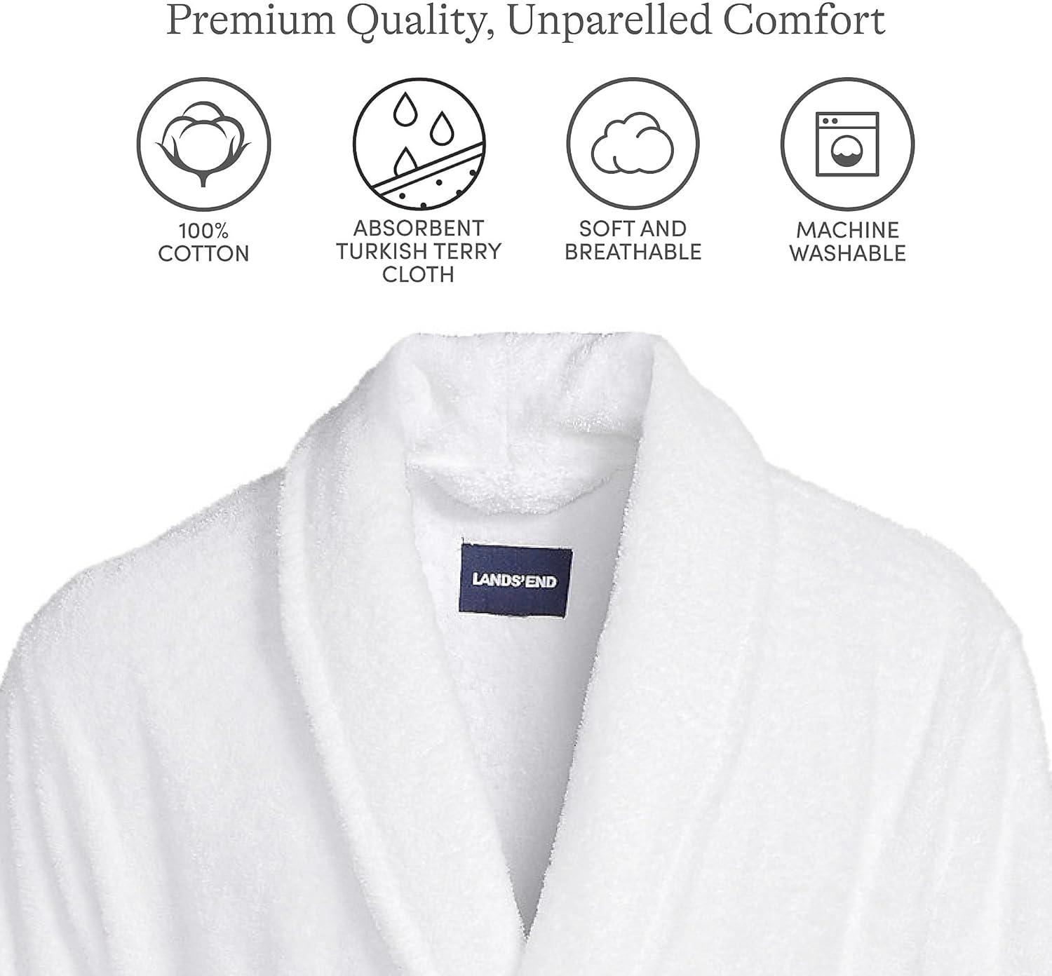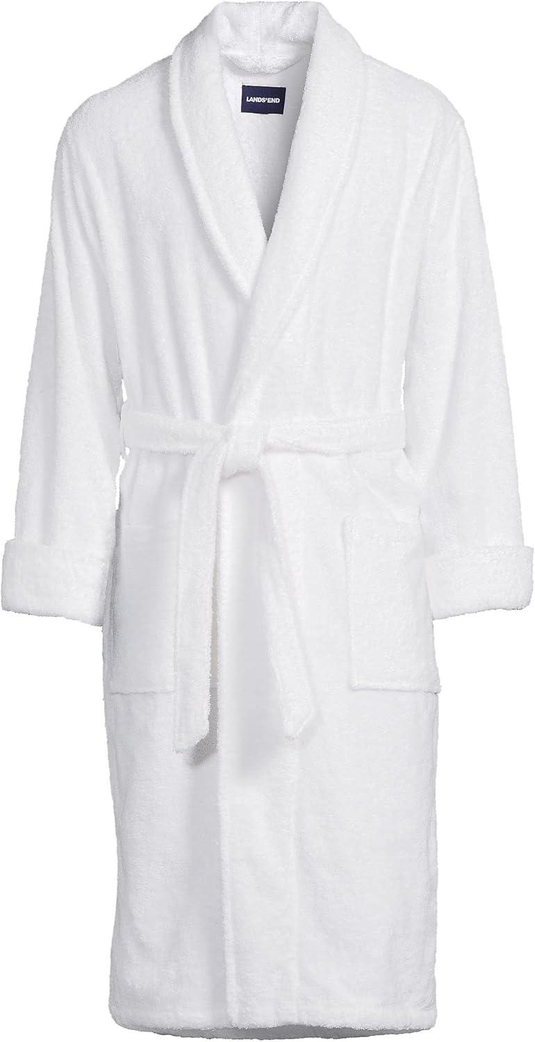 Lands’ End Men’s Full-Length Turkish Cotton Terry Bathrobe – 55″ Length | Plush, Absorbent, 2 Pockets, Spa Comfort(White)