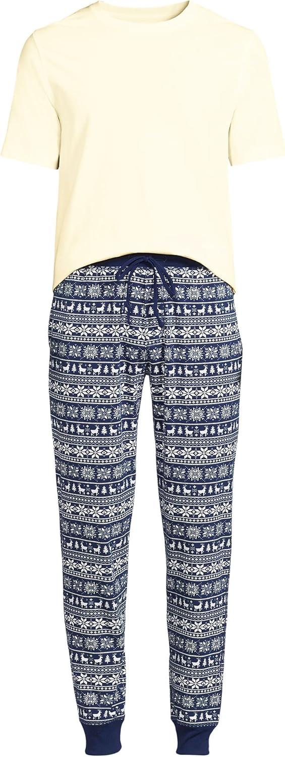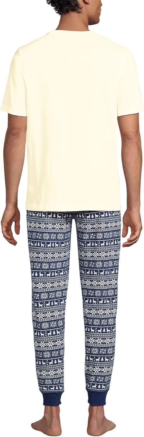 Lands’ End Men’s Knit Jersey Pajama Sleep Set(Deep Sea Deer Fairisle)
