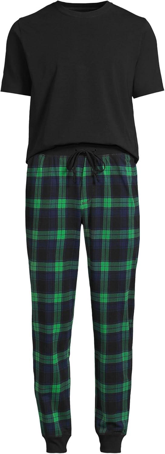 Lands’ End Men’s Knit Jersey Pajama Sleep Set(Rich Clover/Navy Plaid)