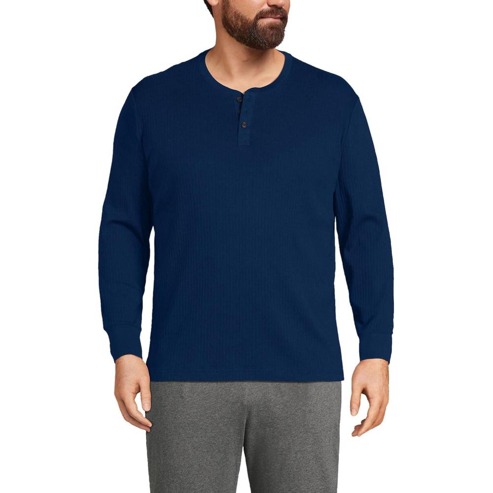 Lands’ End Men’s Knit Rib Henley(Deep Sea Navy)