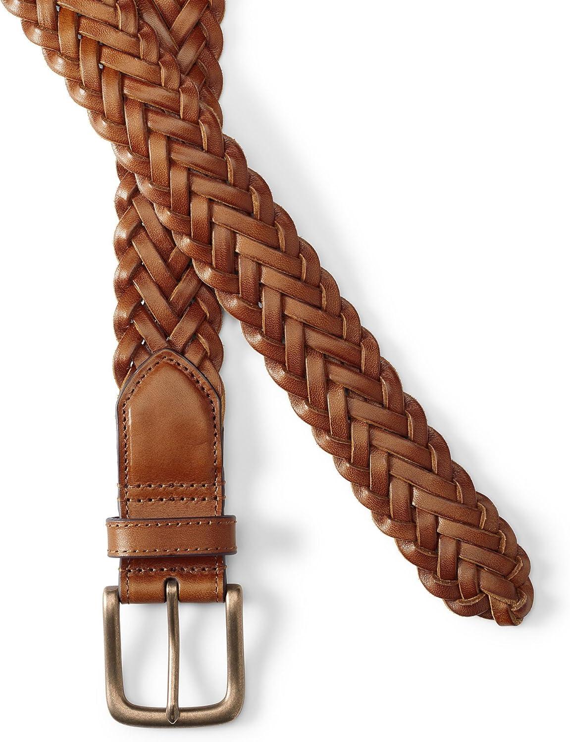 Lands’ End Men’s Leather Braid Belt(Chestnut)