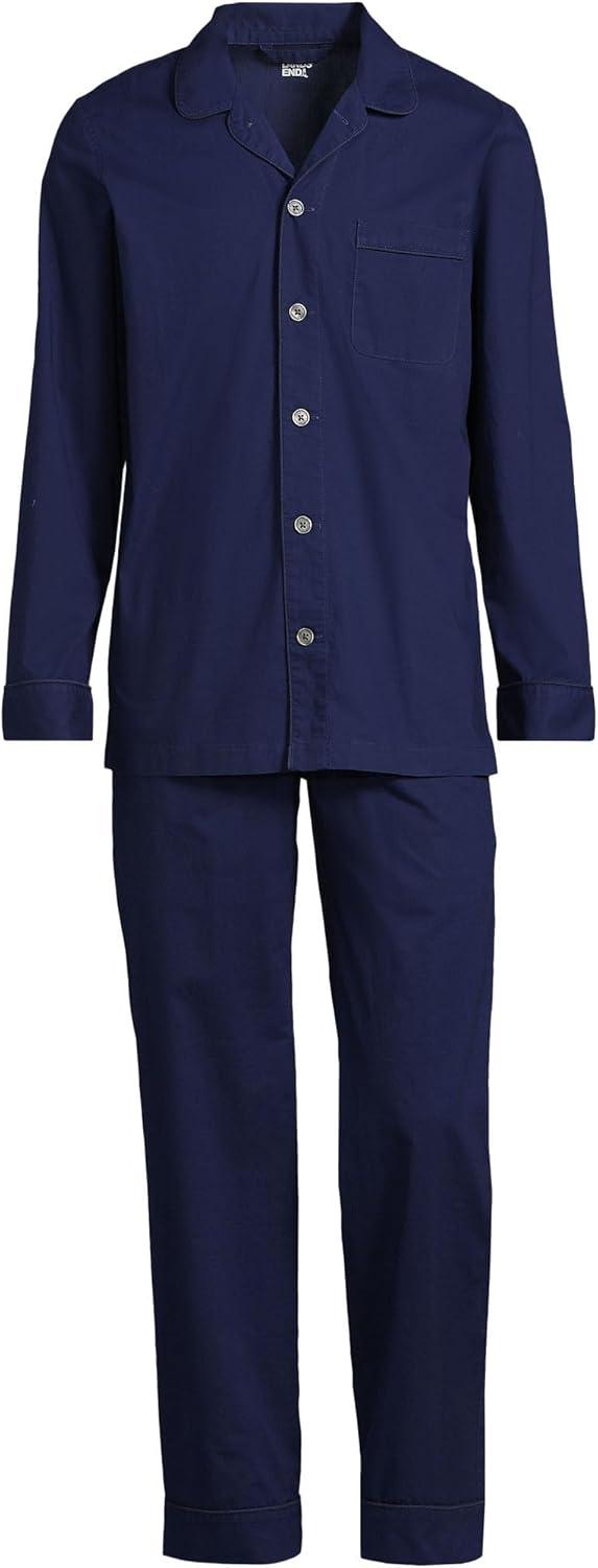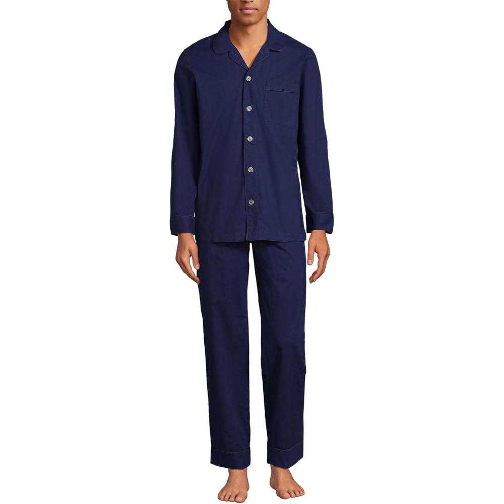Lands’ End Men’s Long Sleeve Essential Pajama Set(Deep Sea Navy)