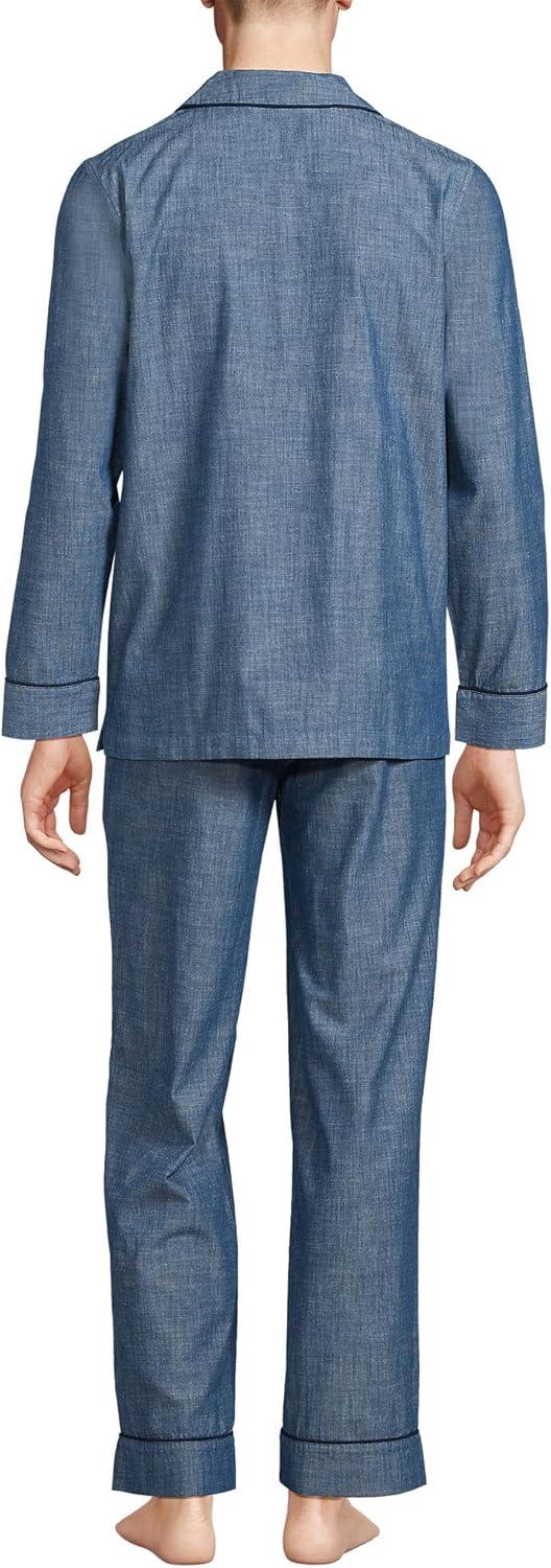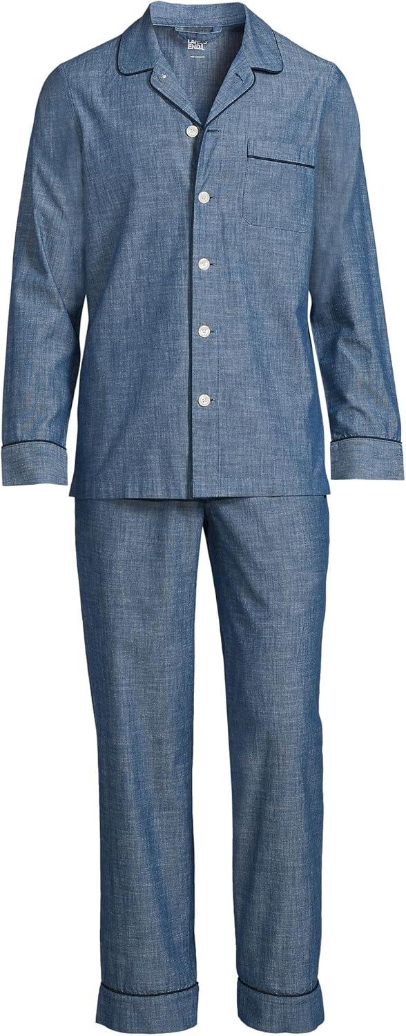Lands’ End Men’s Long Sleeve Essential Pajama Set(Medium Indigo Chambray)