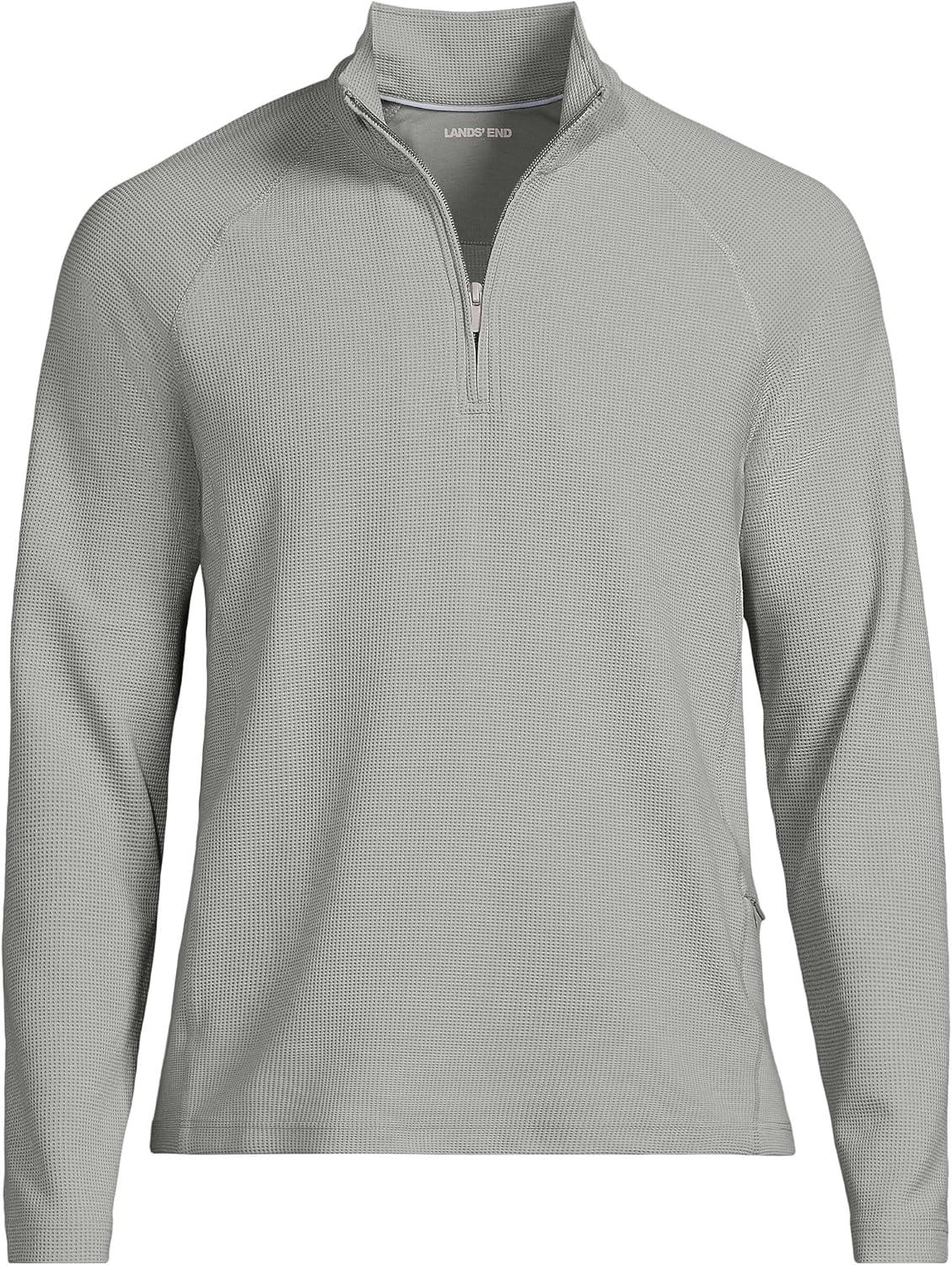 Lands’ End Men’s Long Sleeve Waffle Quarter Zip(Metal Gray)