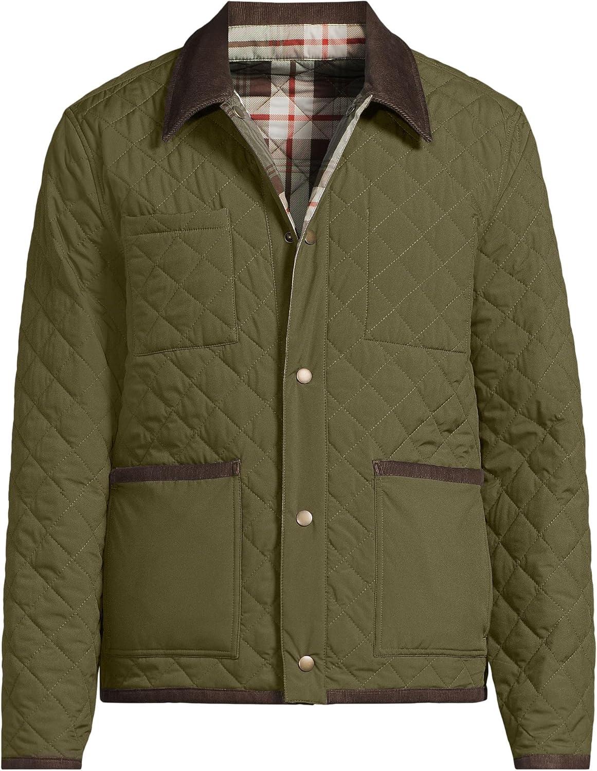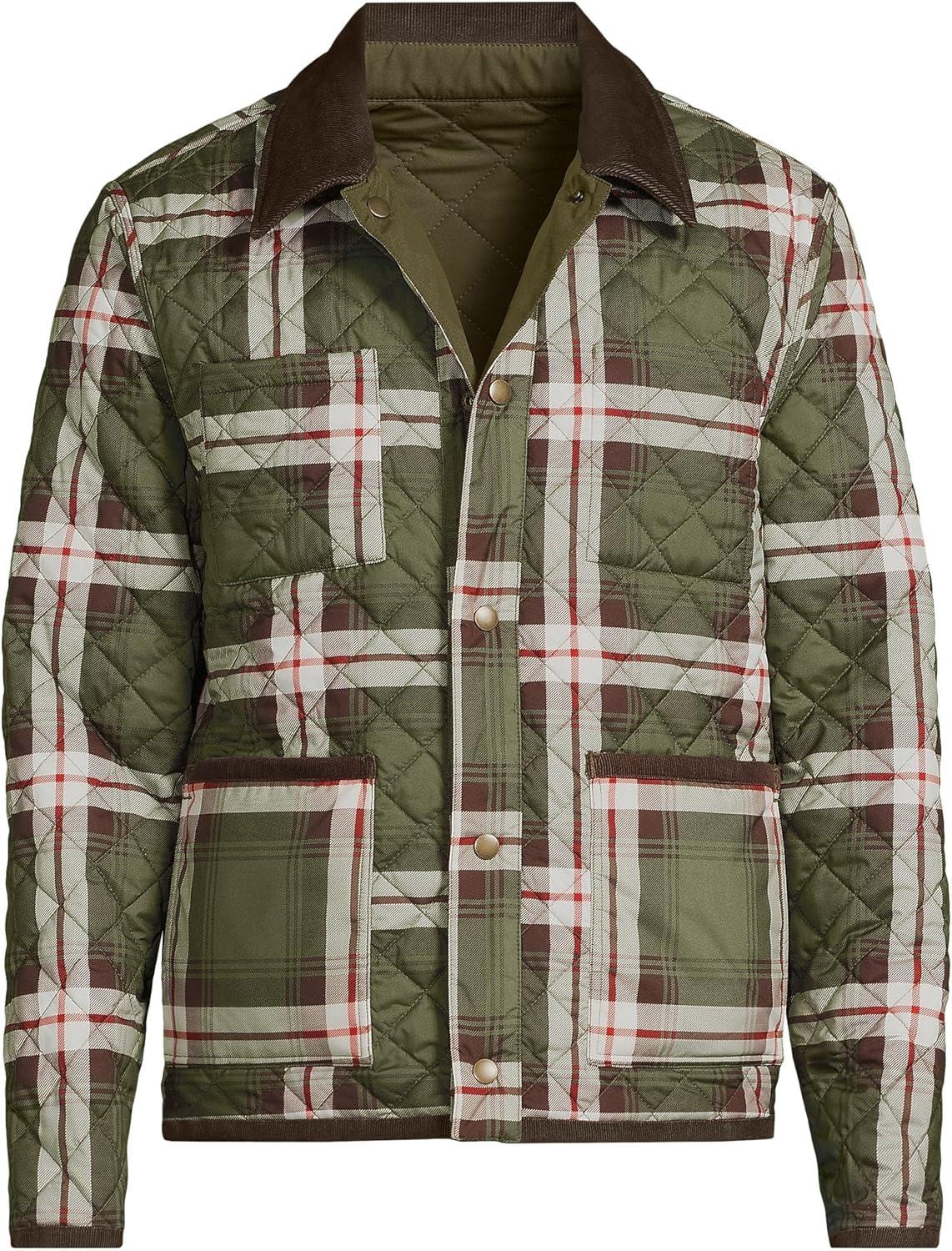 Lands’ End Men’s Reversible Insulated Barn Jacket(River Stone/Olive Plaid)