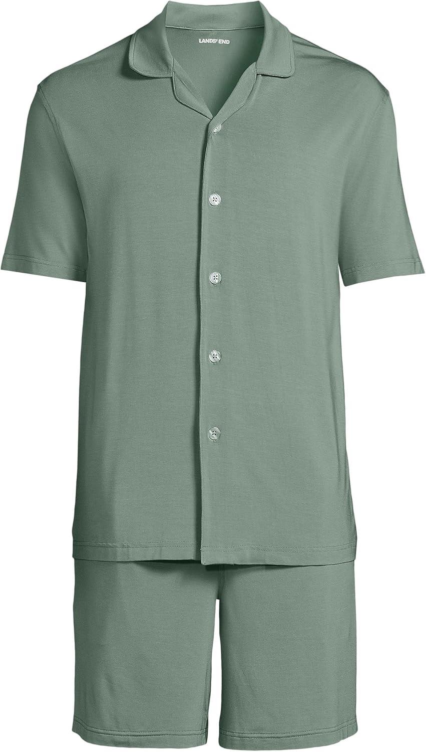 Lands’ End Men’s Short Sleeve Cooling Knit Short Set(Lily Pad Green)