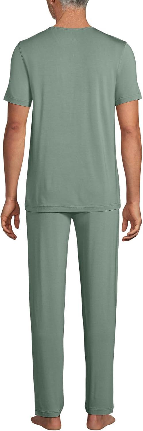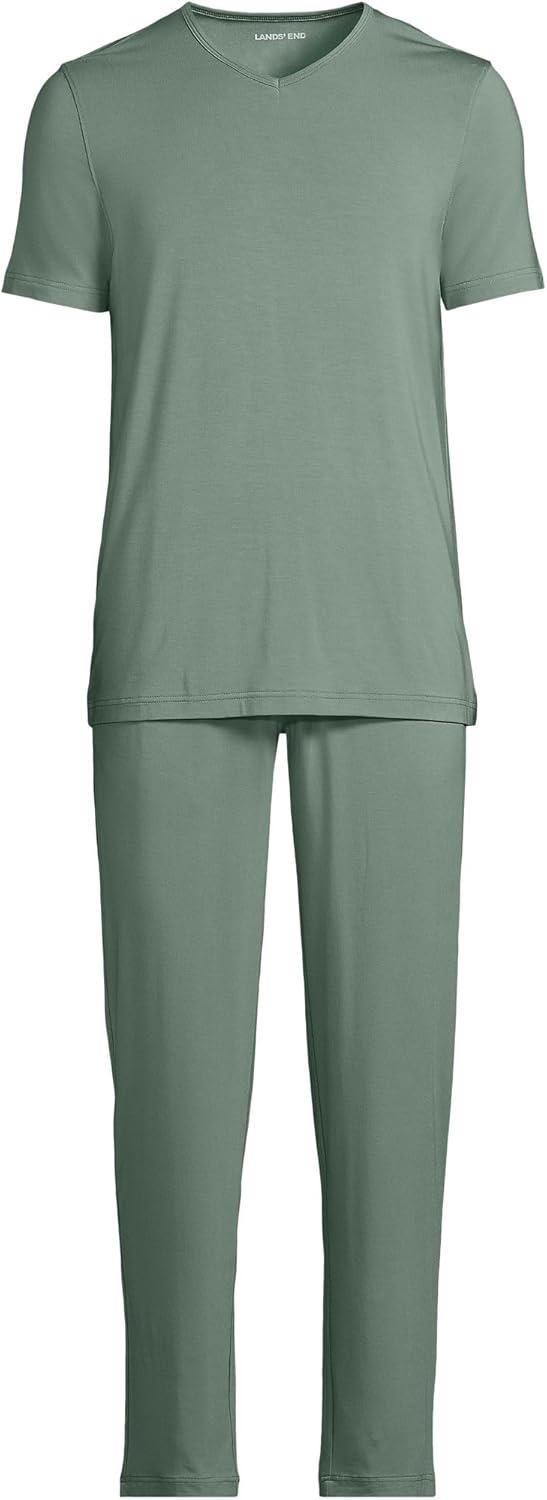 Lands’ End Men’s Short Sleeve Cooling Knit V-Neck Pajama Set(Lily Pad Green)