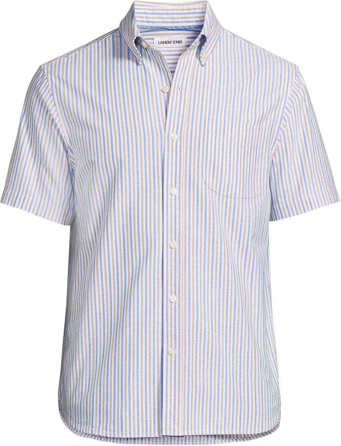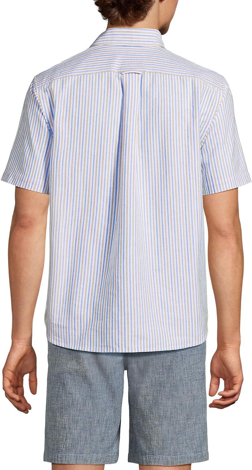 Lands’ End Men’s Short Sleeve Sail Rigger Shirt(Clear Blue /Khaki Stripe)