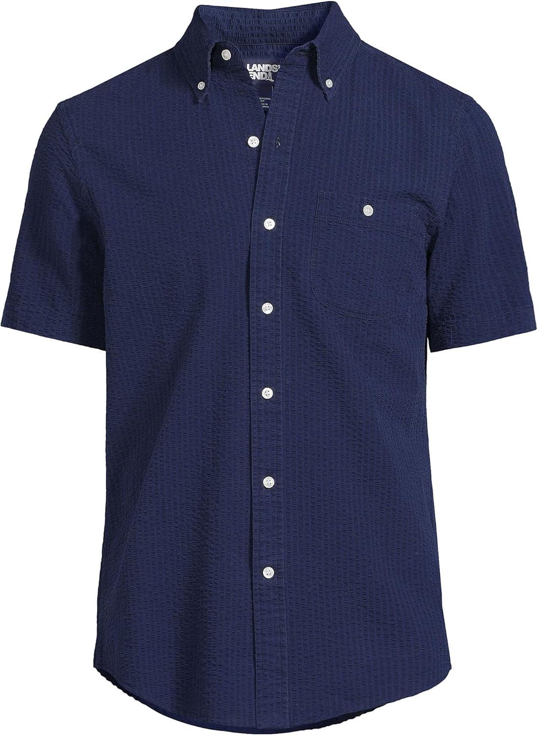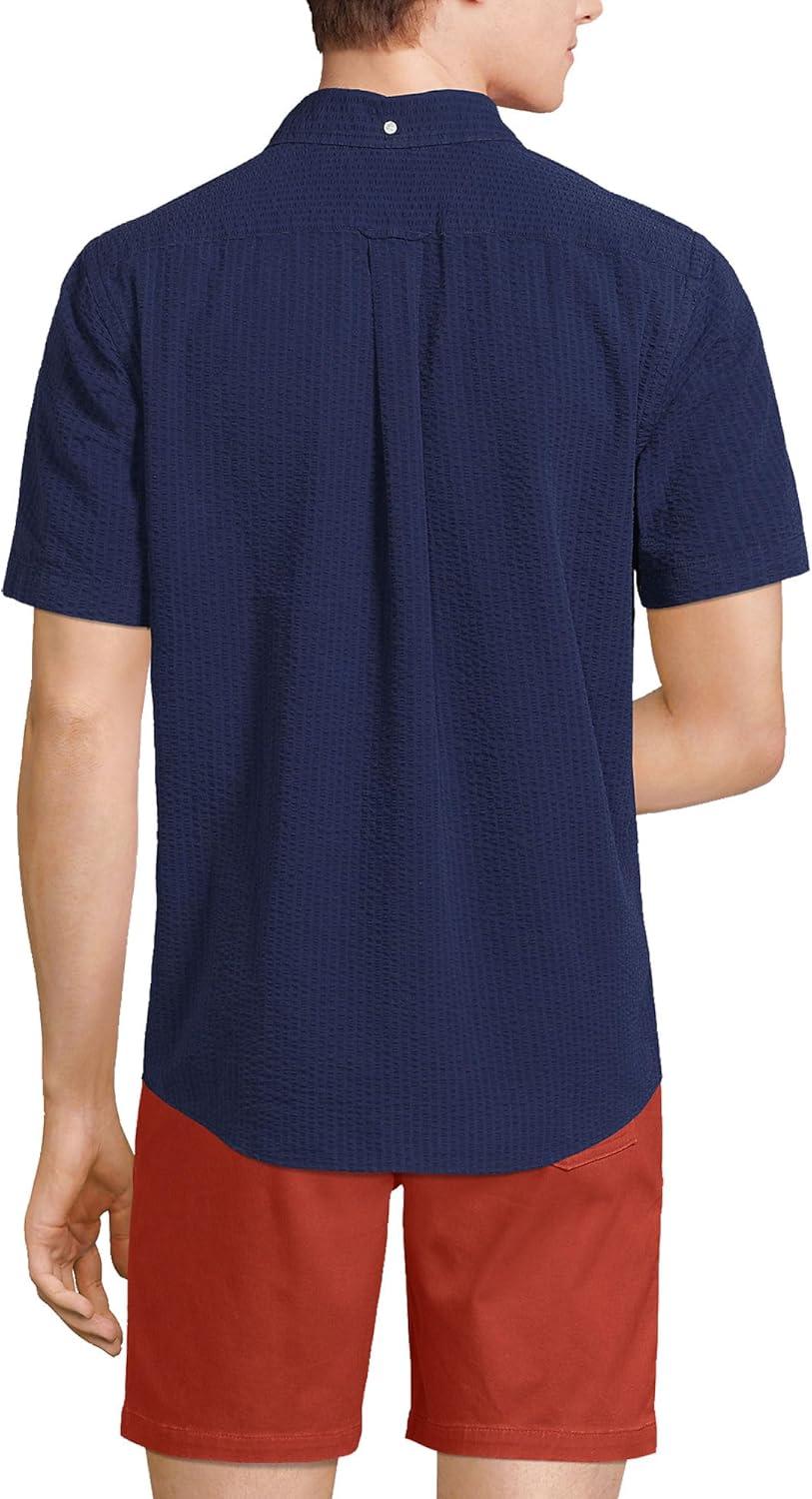 Lands’ End Men’s Short Sleeve Seersucker Shirt(Deep Sea Navy)