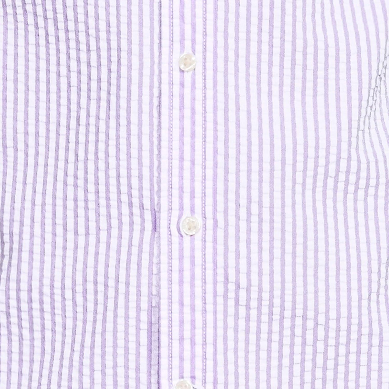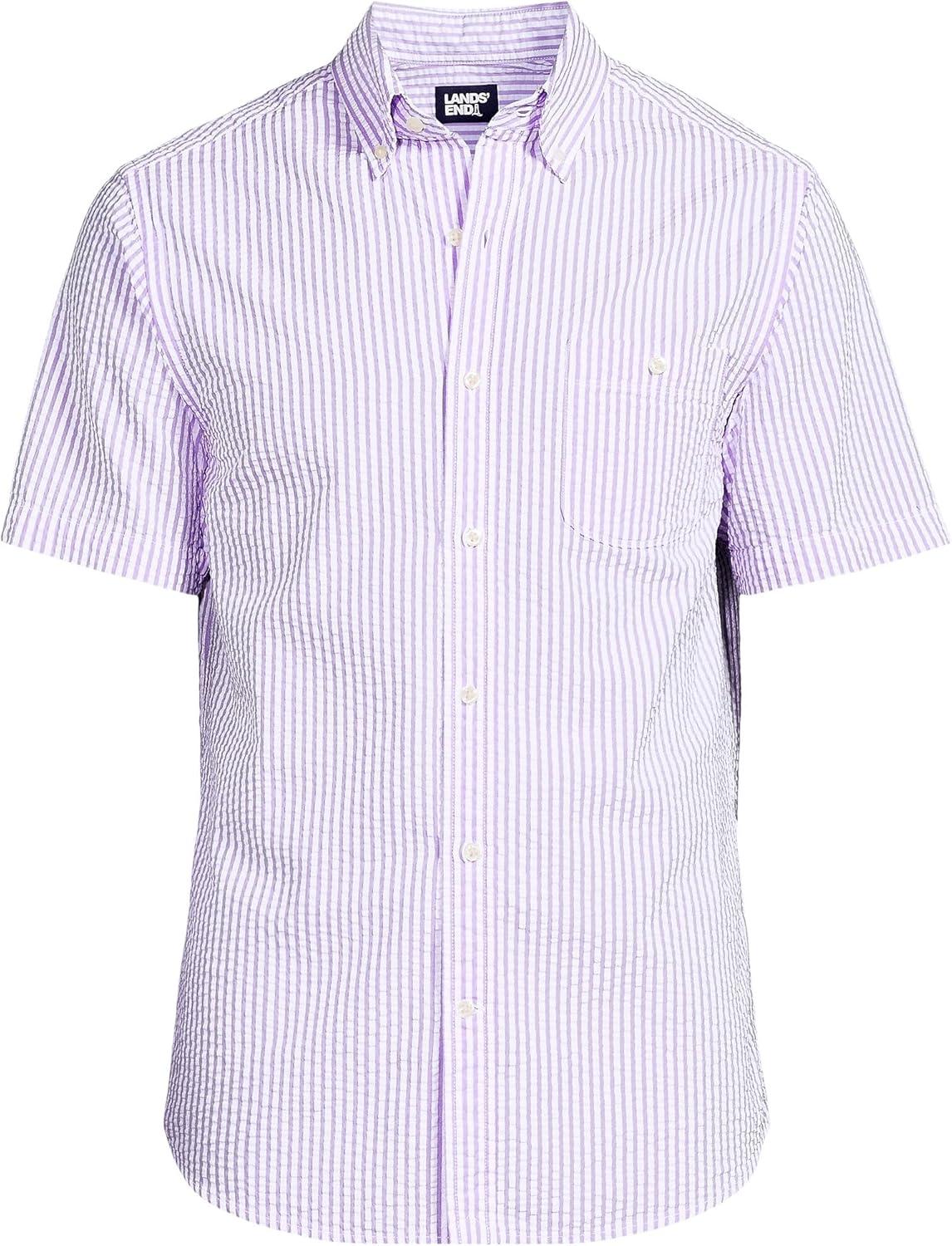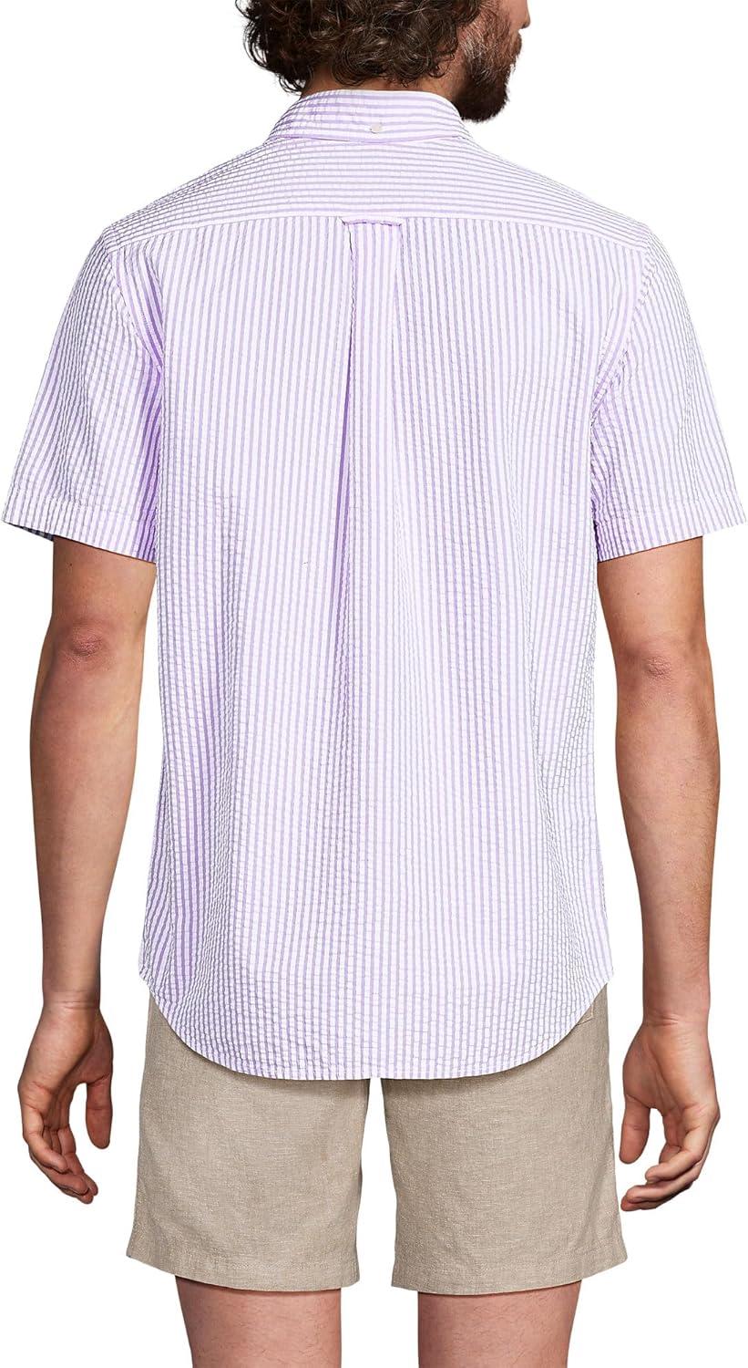 Lands’ End Men’s Short Sleeve Seersucker Shirt(Soft Orchid Banker Stripe)