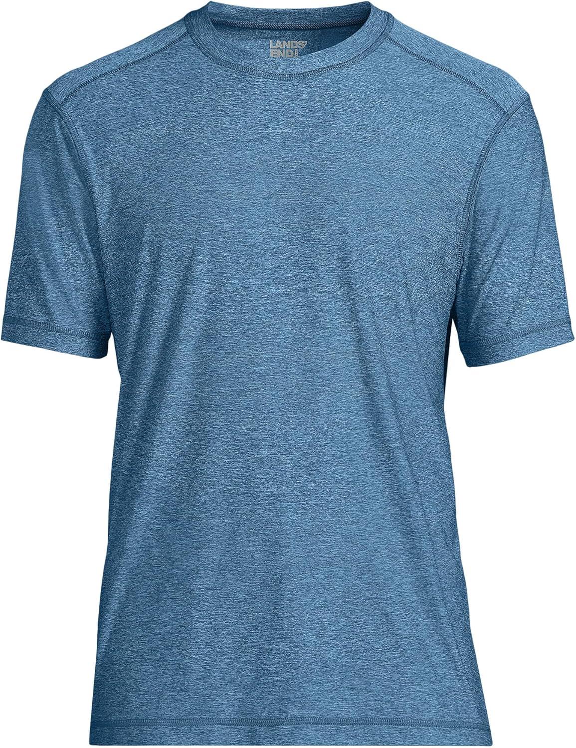 Lands’ End Men’s Short Sleeve Swim Tee Rash Guard(Evening Blue Heather)