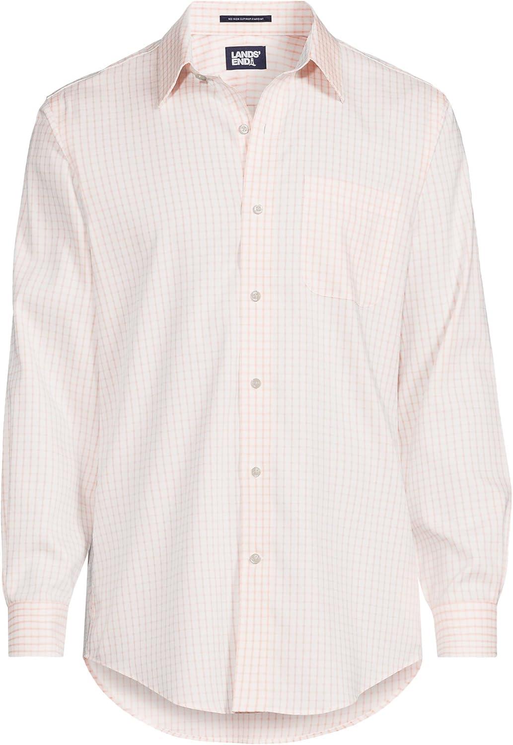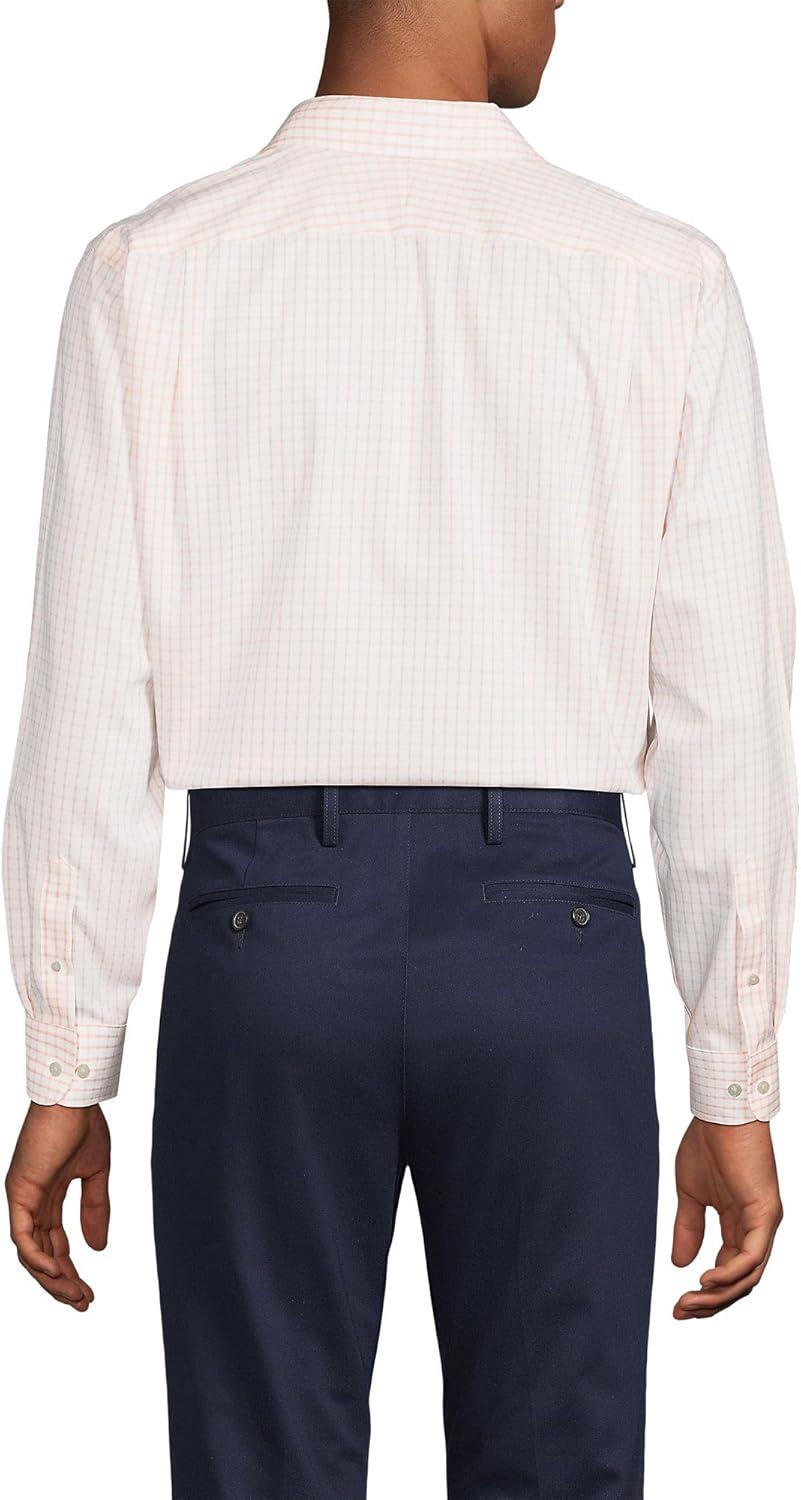 Lands’ End Men’s Solid No Iron American-Grown Supima Pinpoint Straight Collar Dress Shirt(Tinted Peach Windowpanes)