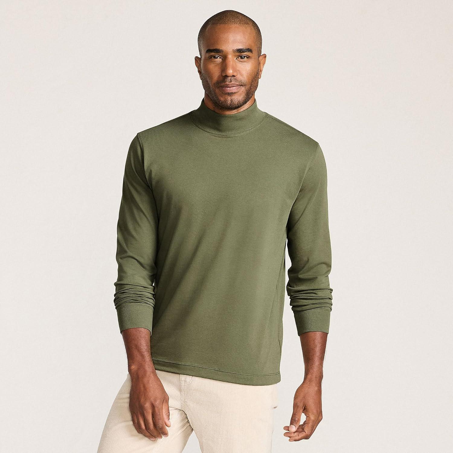 Lands’ End Men’s Super-T Cotton-Blend Mock Turtleneck Shirt(River Stone Green)
