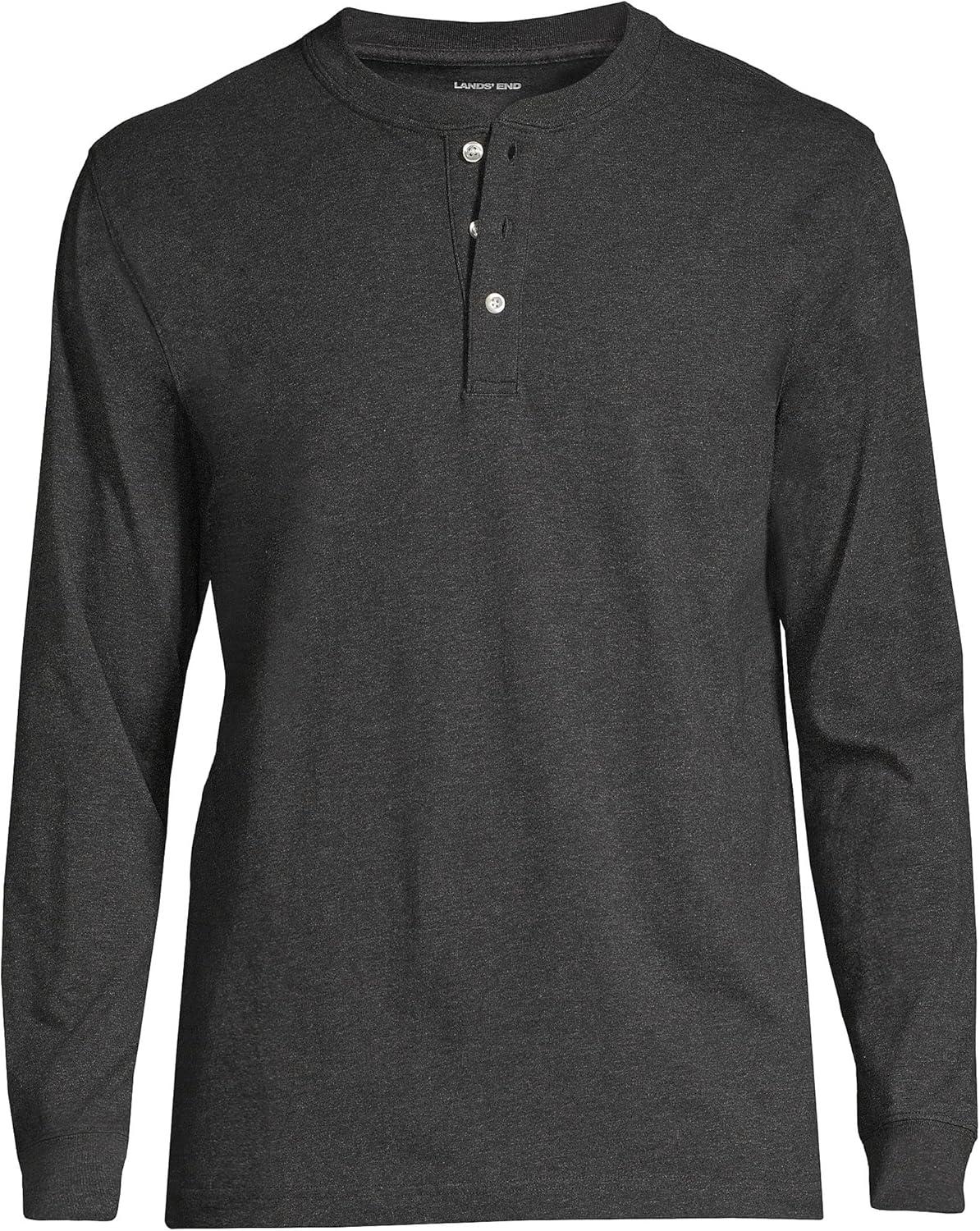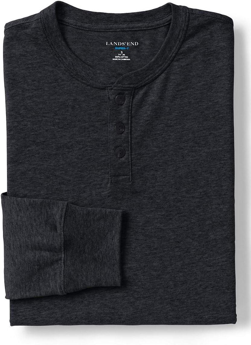 Lands’ End Men’s Super-T Long Sleeve Henley Shirt(Dark Charcoal Heather)