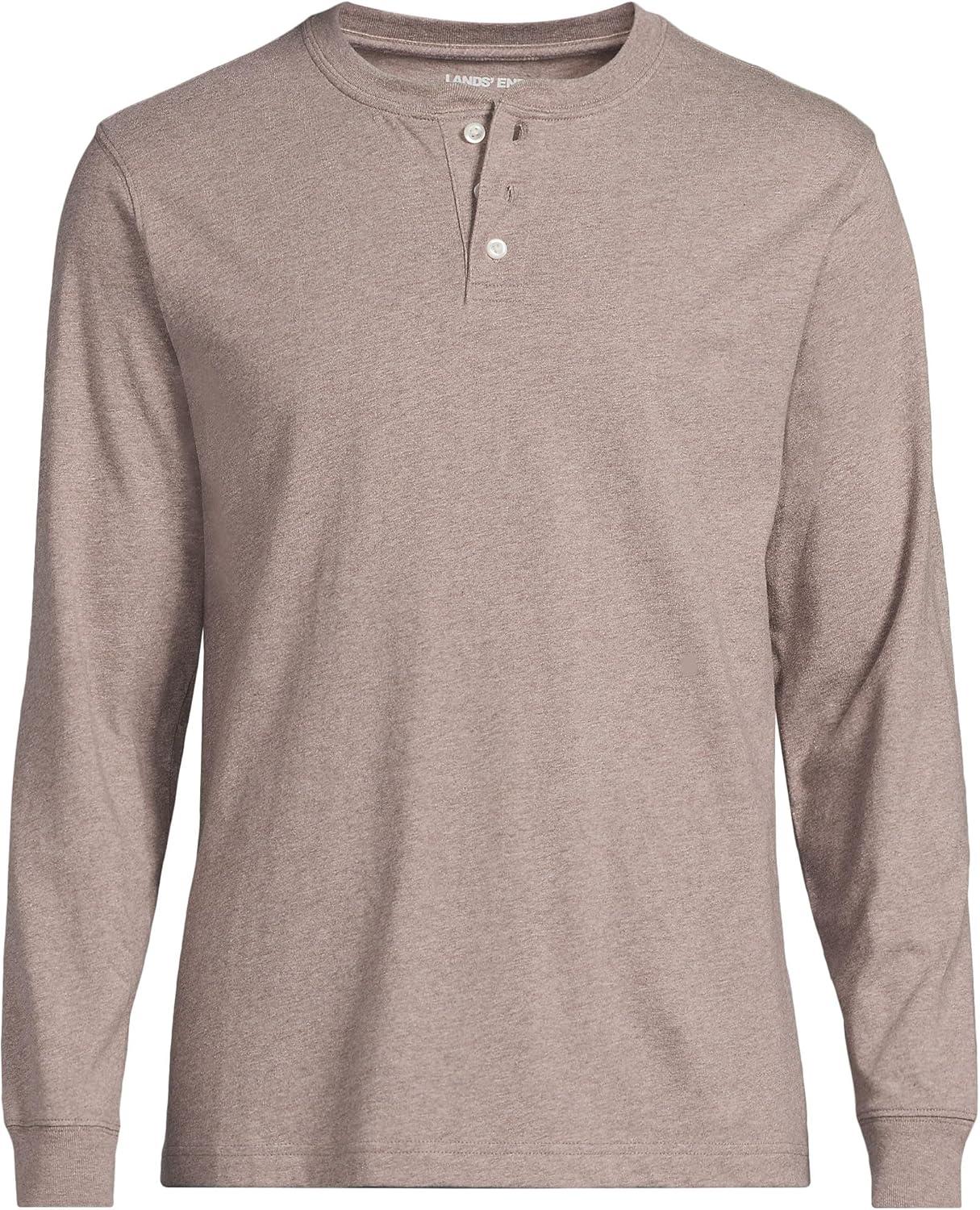 Lands’ End Men’s Super-T Long Sleeve Henley Shirt(Light Bark Heather)