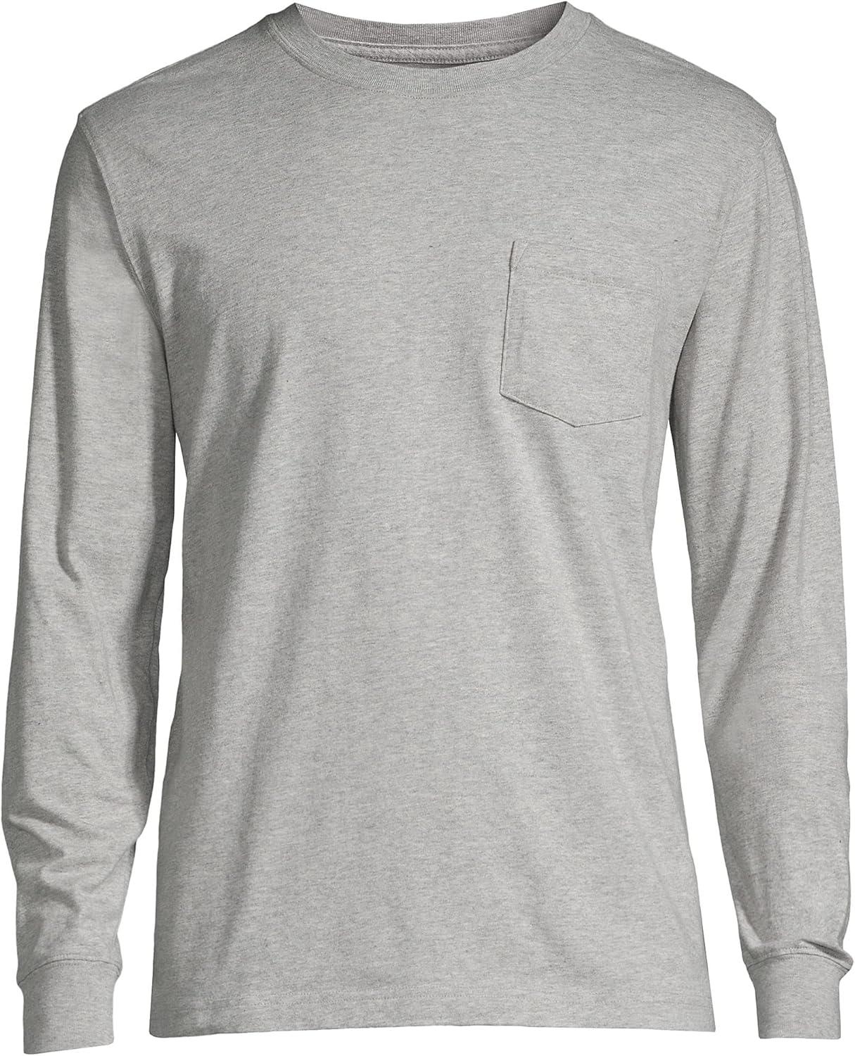Lands’ End Men’s Super-T Long Sleeve T-Shirt with Pocket(Gray Heather)
