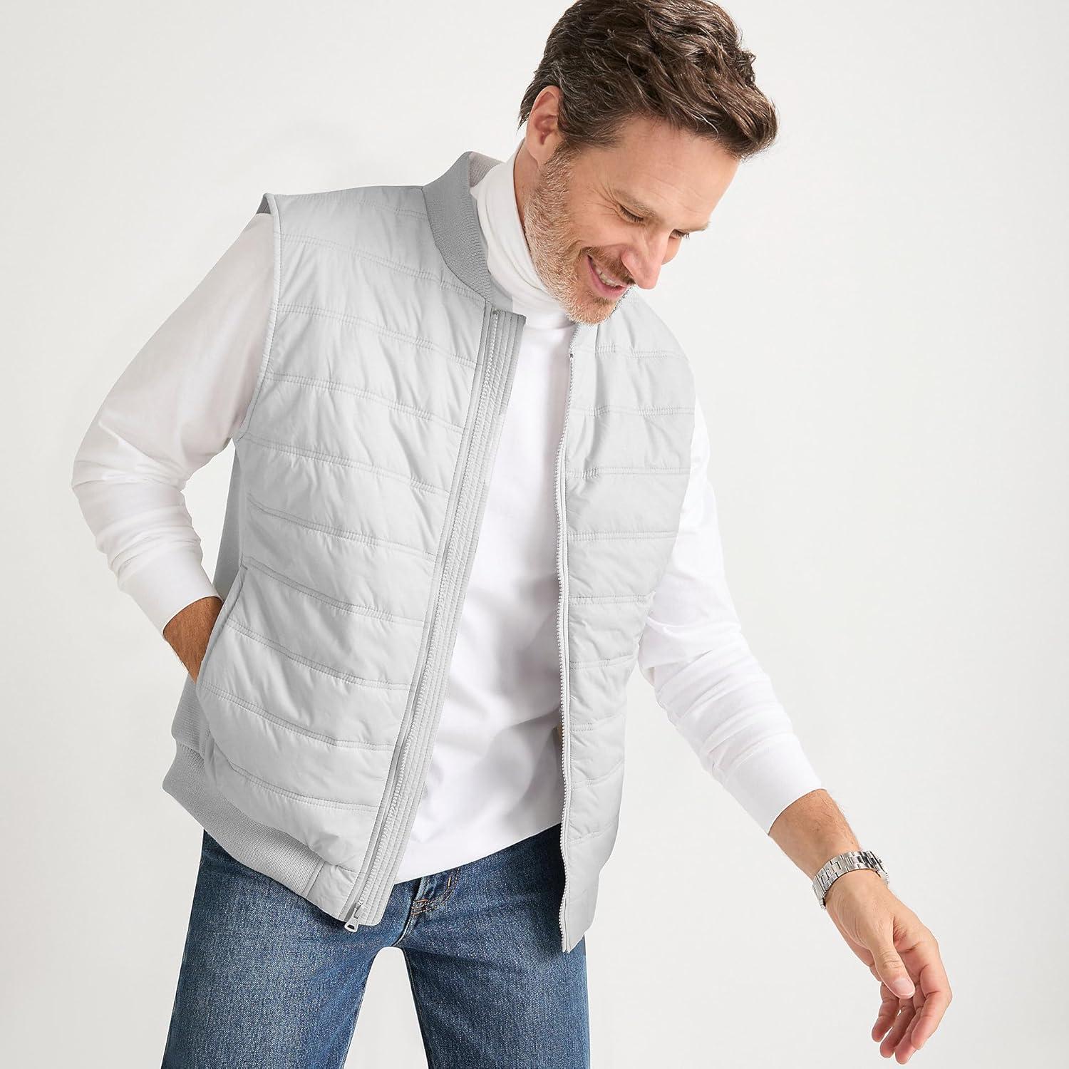 Lands’ End Men’s Sweater Hybrid Vest(Light Mist)