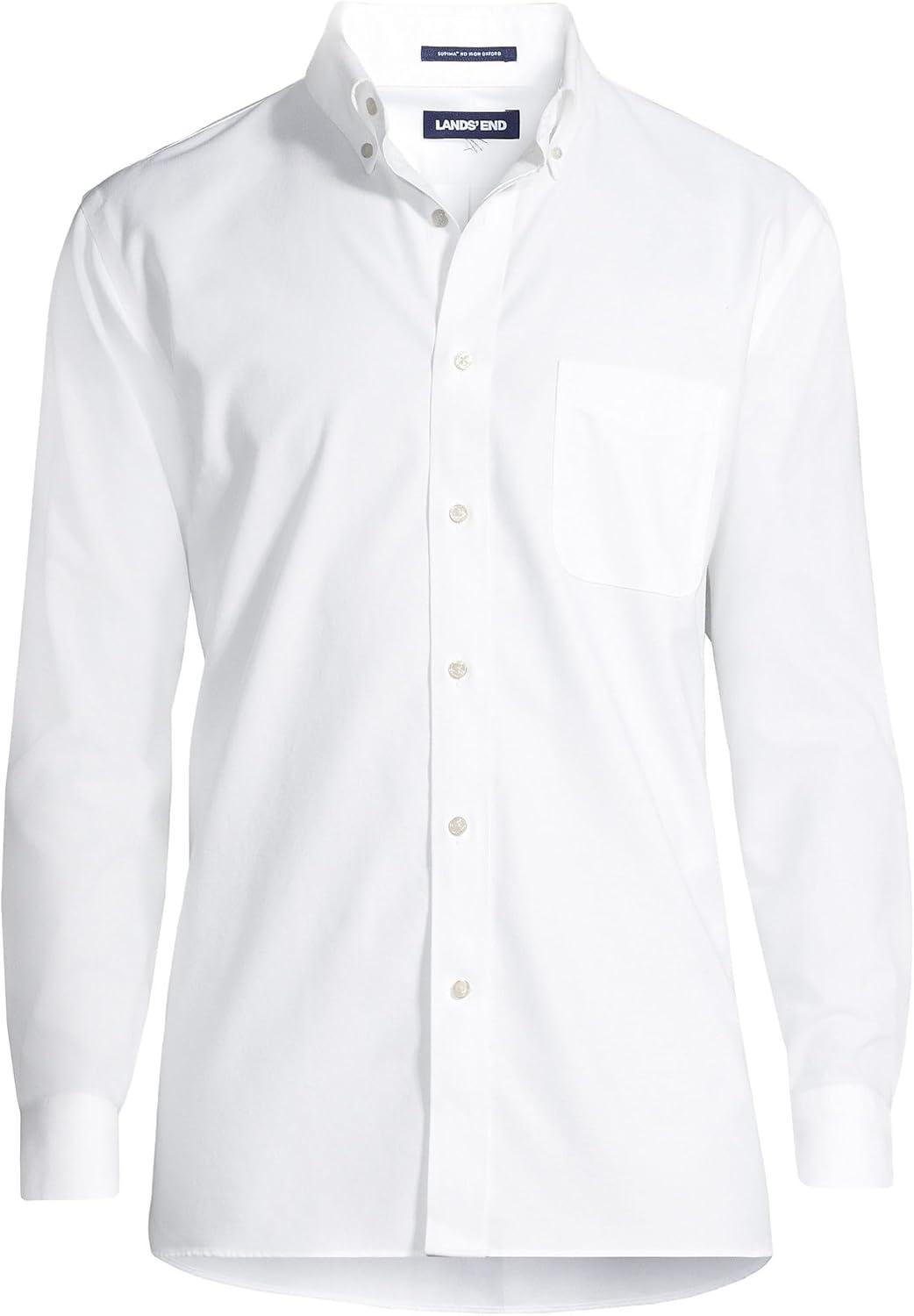 Lands’ End Men’s Tailored Fit No Iron Solid American-Grown Supima Cotton Oxford Dress Shirt(White)