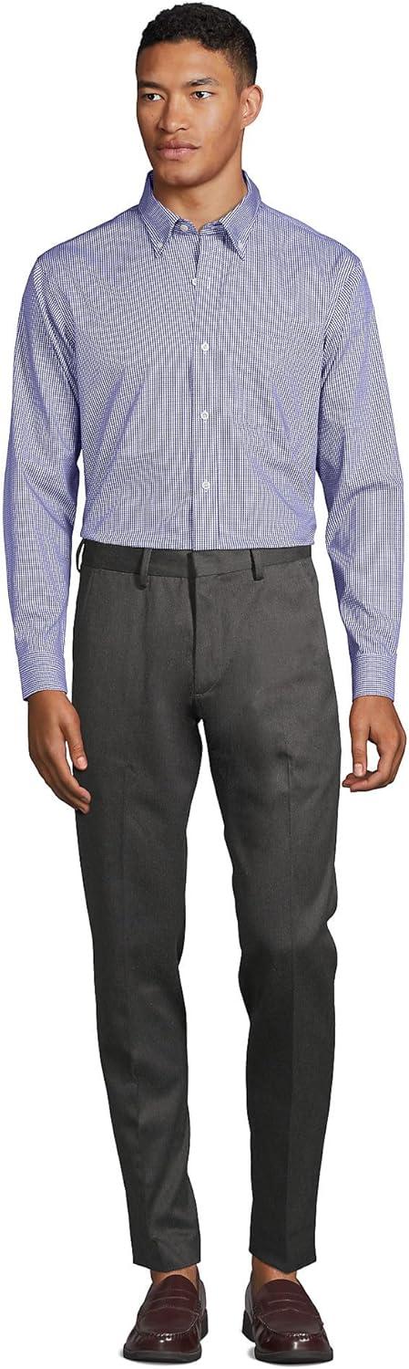 Lands’ End Men’s Tailored Fit No Iron Solid American-Grown Supima Cotton Pinpoint Buttondown Collar Dress Shirt(Rich Sapphire Check)