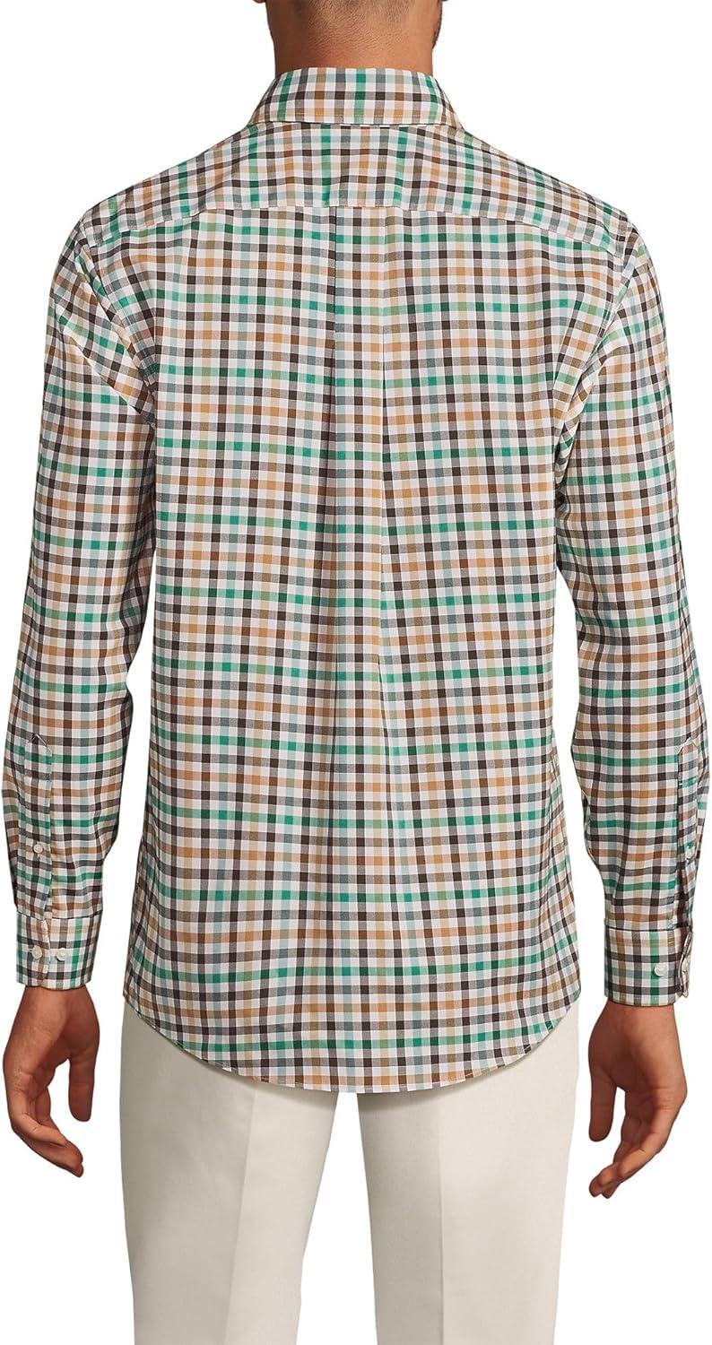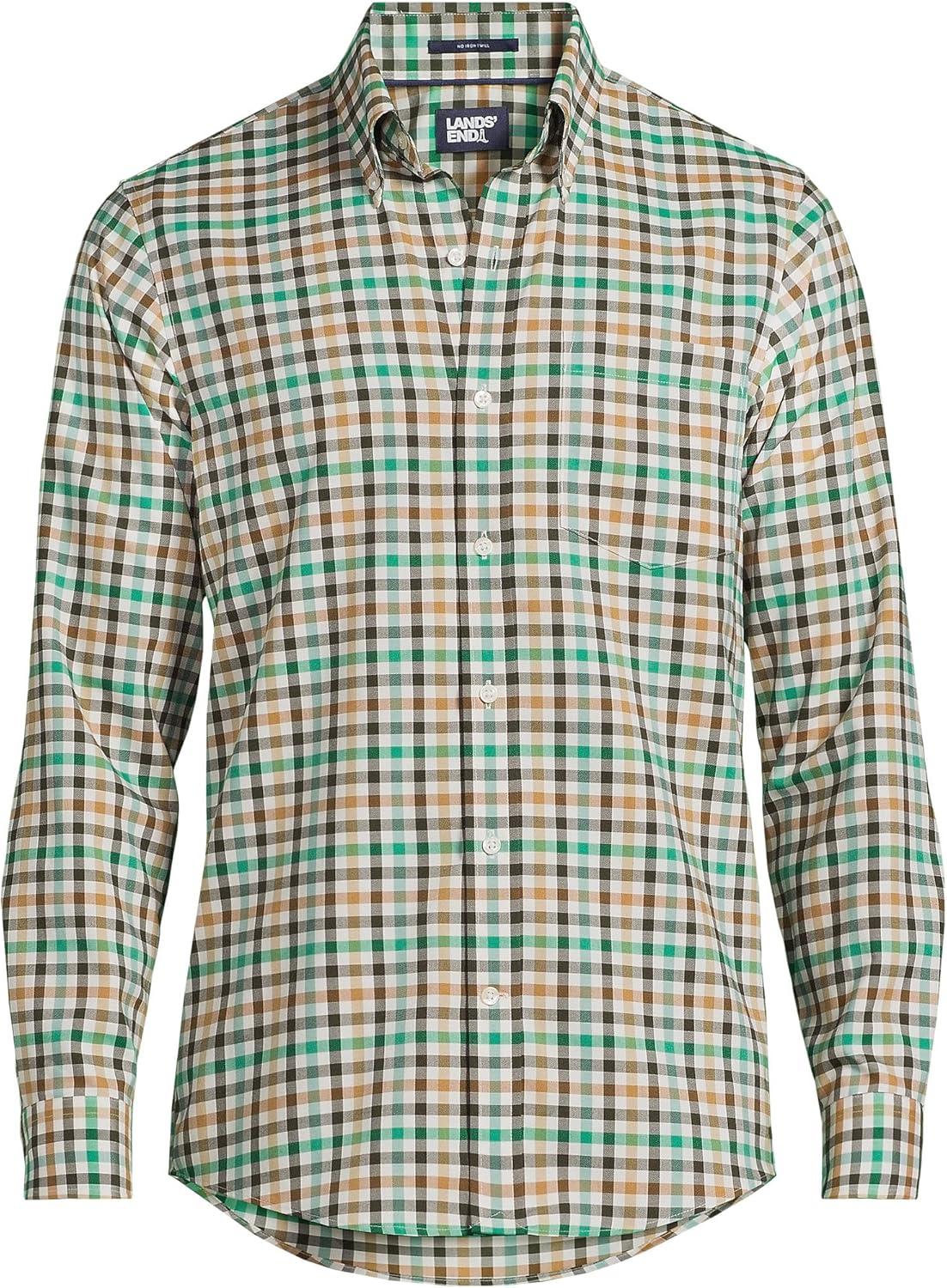 Lands’ End Men’s Tailored Fit No Iron Twill Long Sleeve Shirt(Fresh Evergreen/Green Plaid)
