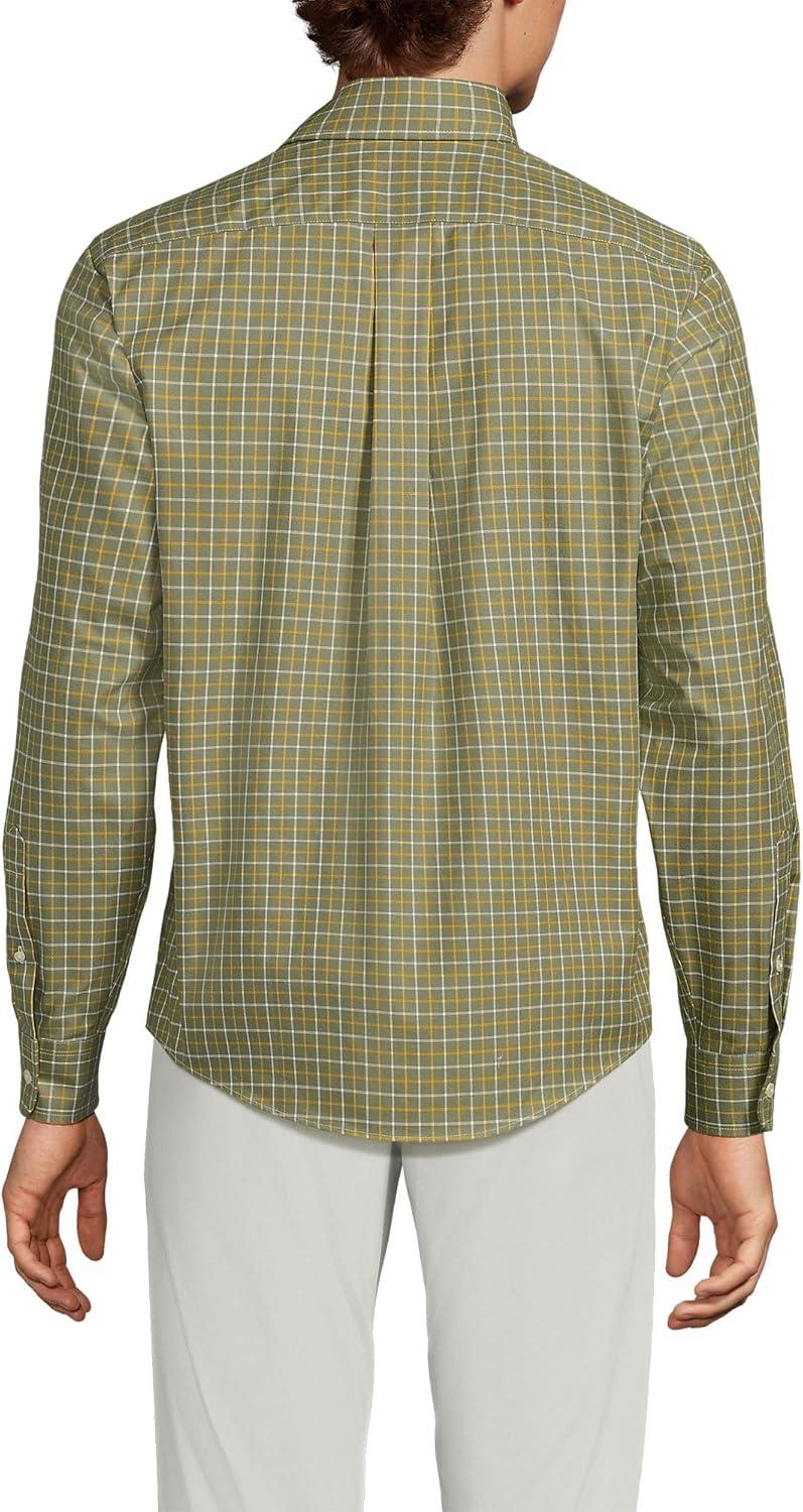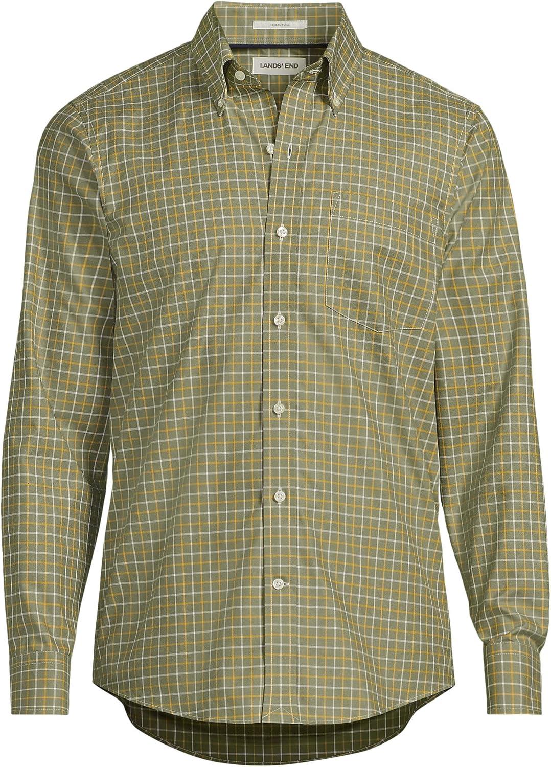 Lands’ End Men’s Tailored Fit No Iron Twill Long Sleeve Shirt(River Stone Green/Gold Plaid)