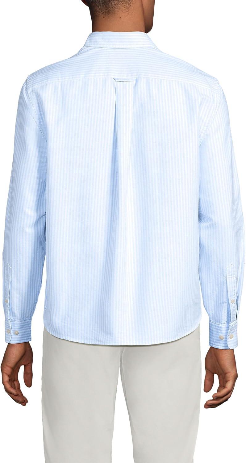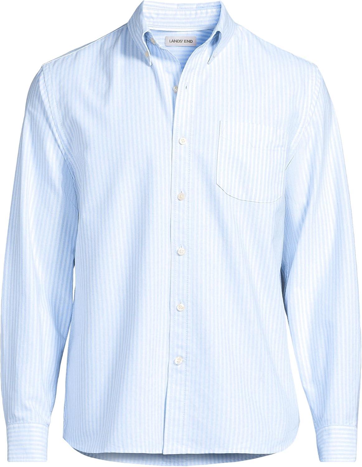 Lands’ End Men’s Traditional Fit Comfort-First Sail Rigger Oxford Shirt(Clear Blue Stripe)