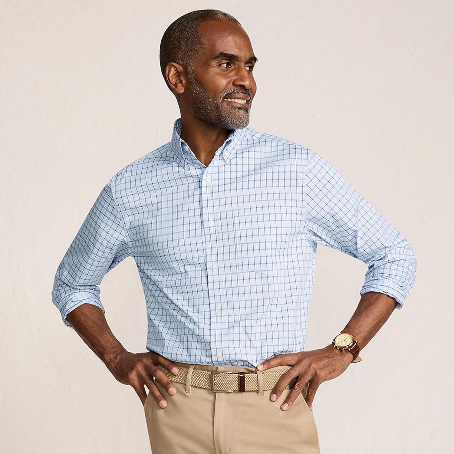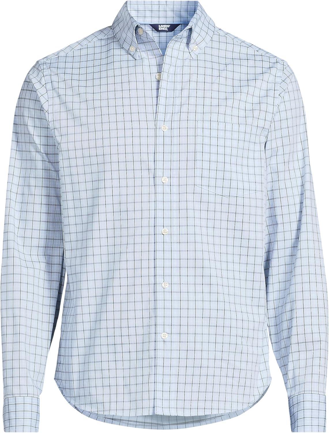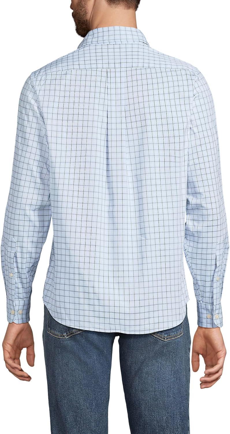Lands’ End Men’s Traditional Fit Long Sleeve Travel Kit Shirt(Clearlake Blue Plaid)