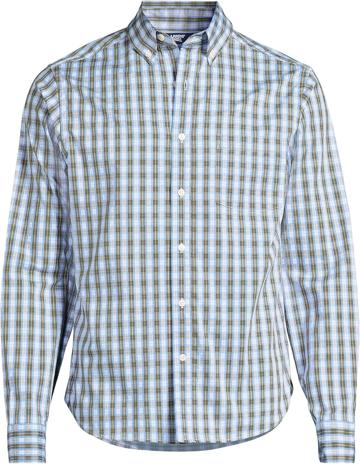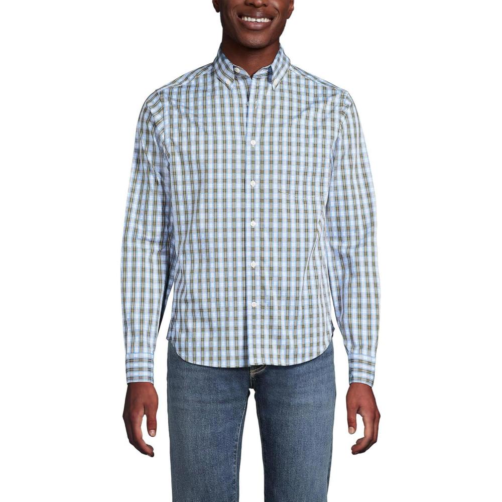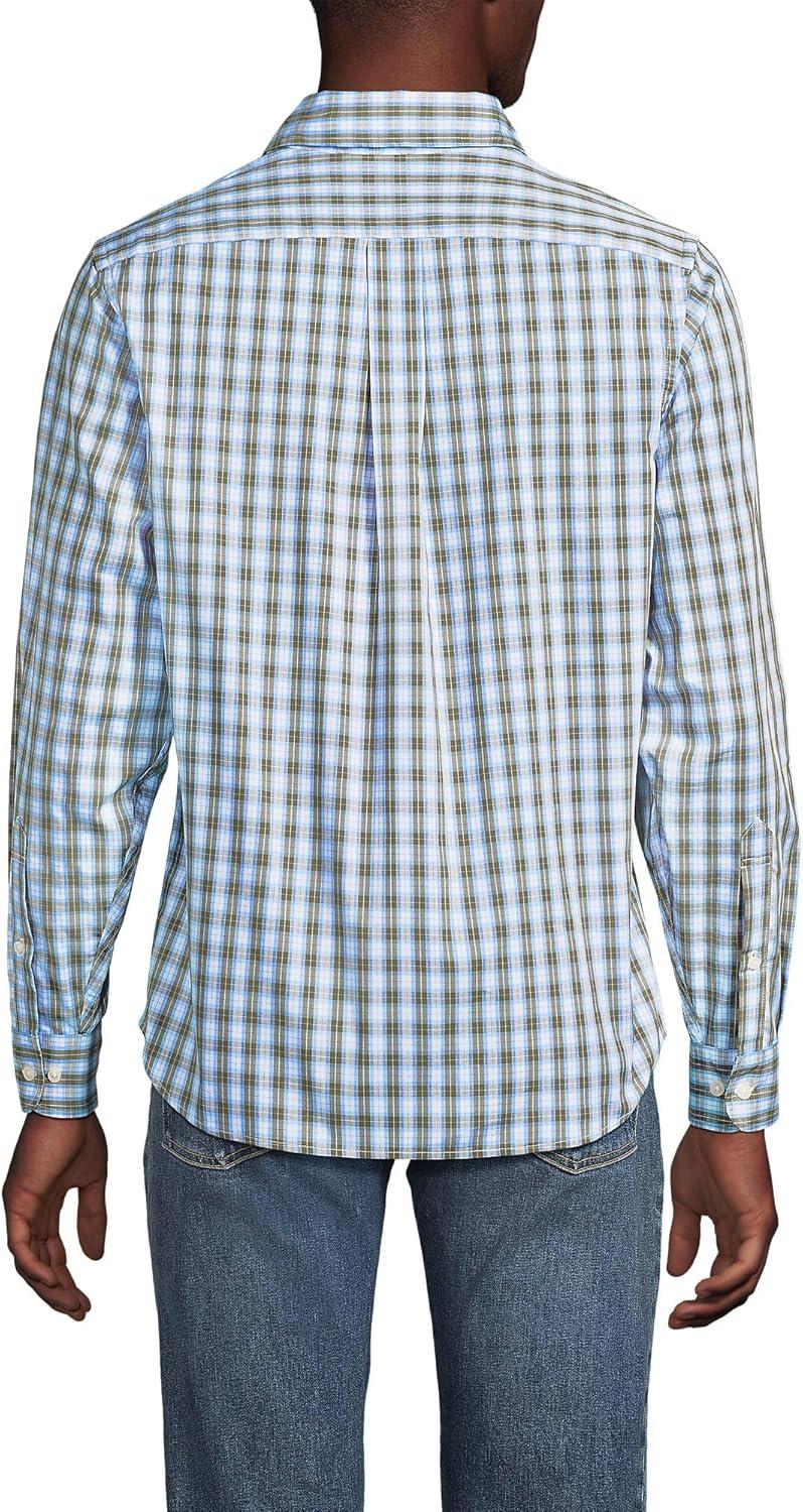 Lands’ End Men’s Traditional Fit Long Sleeve Travel Kit Shirt(Olive Drab/Blue Plaid)
