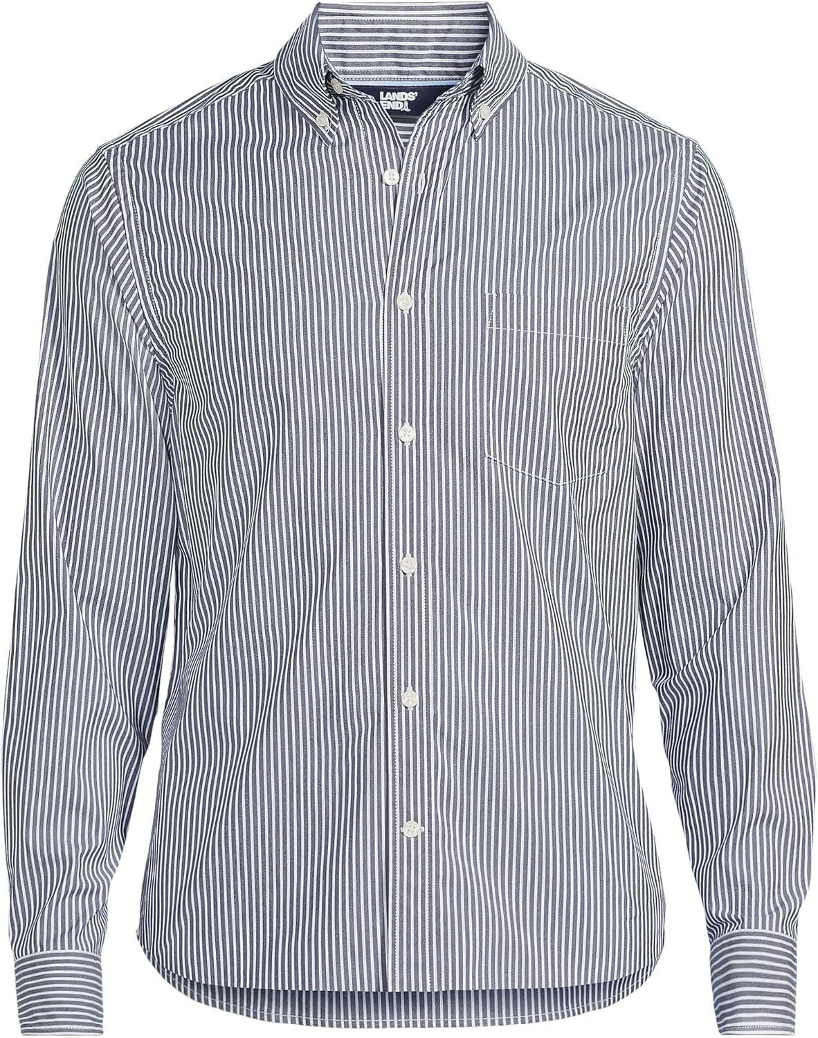 Lands’ End Men’s Traditional Fit Long Sleeve Travel Kit Shirt(Radiant Navy Stripe)