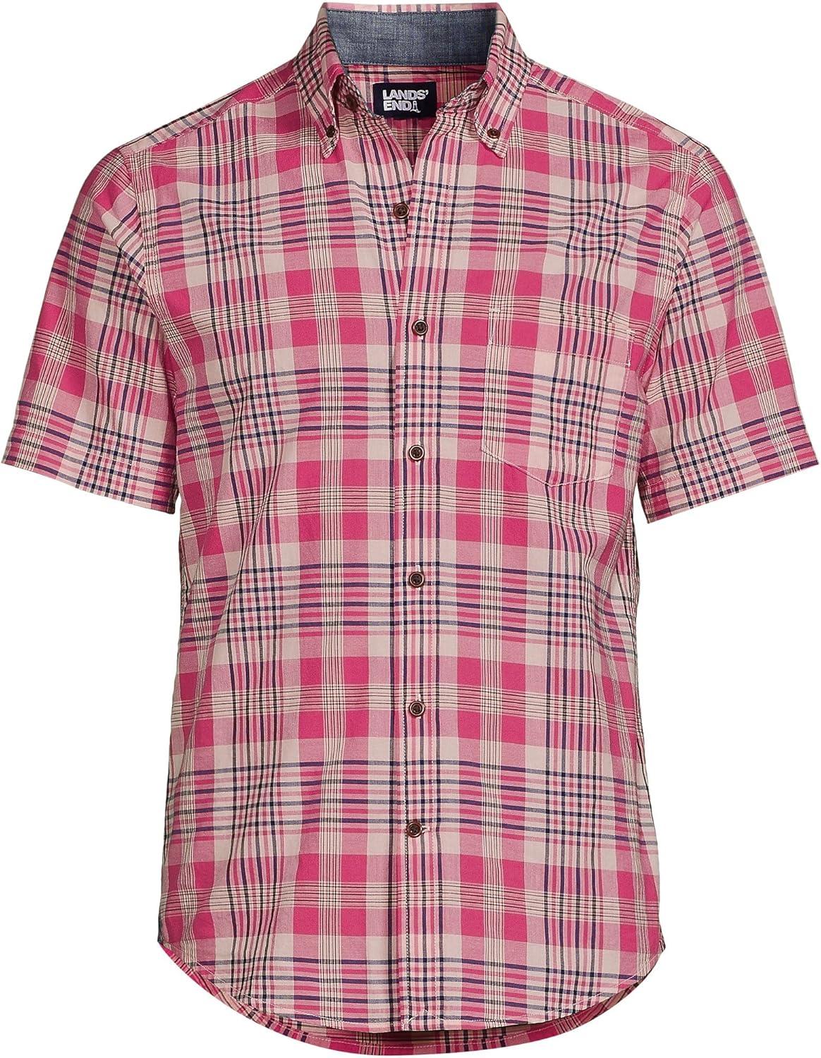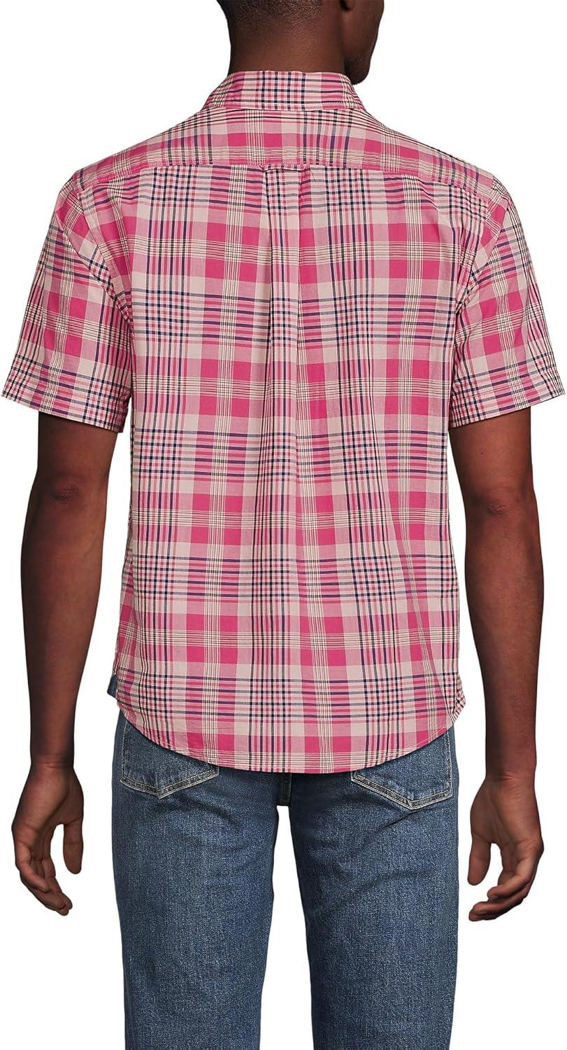 Lands’ End Men’s Traditional Fit Short Sleeve Madras Shirt(Spiced Rhubarb/Peach Plaid)