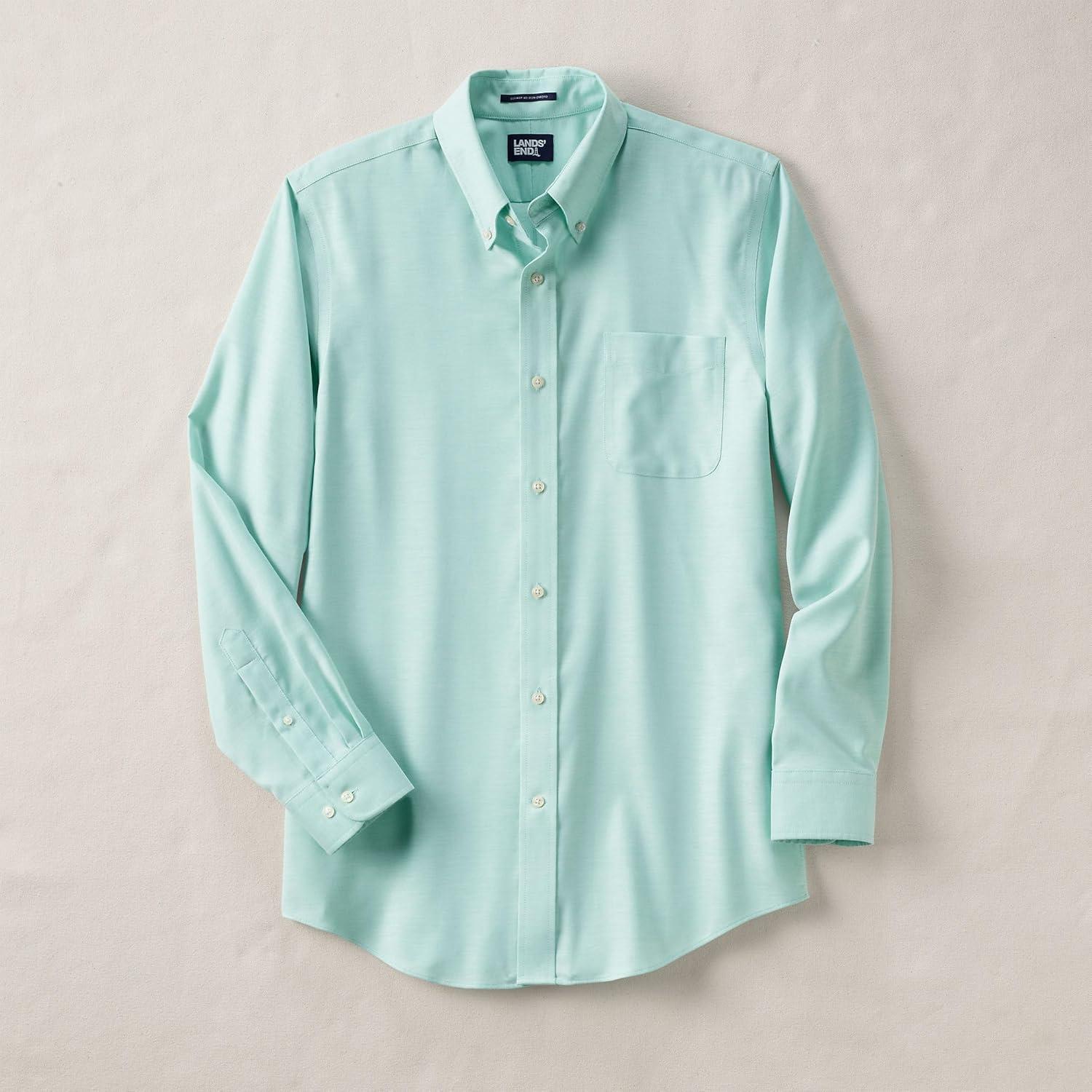 Lands’ End Men’s Traditional Fit Solid No Iron American-Grown Supima Oxford Dress Shirt(Frosted Green)
