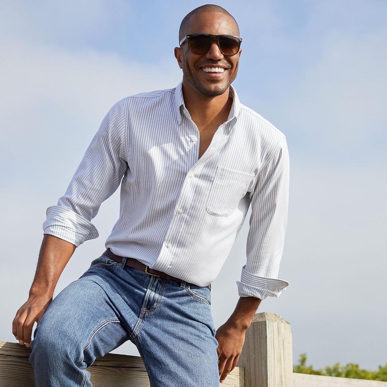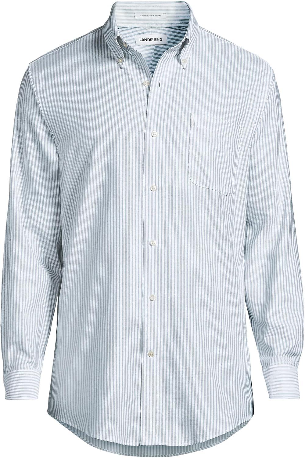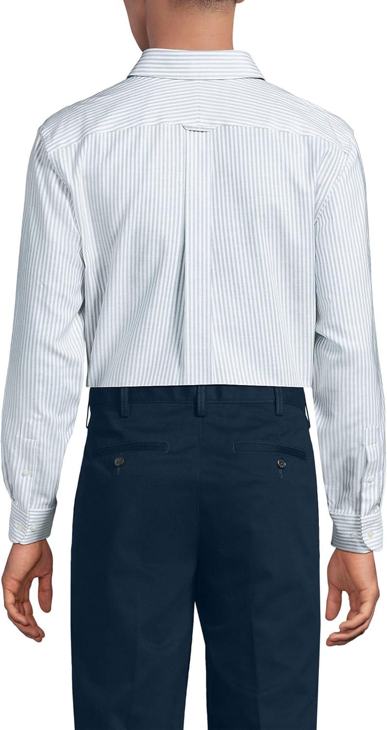 Lands’ End Men’s Traditional Fit Solid No Iron American-Grown Supima Oxford Dress Shirt(Tourmaline/White Stripe)