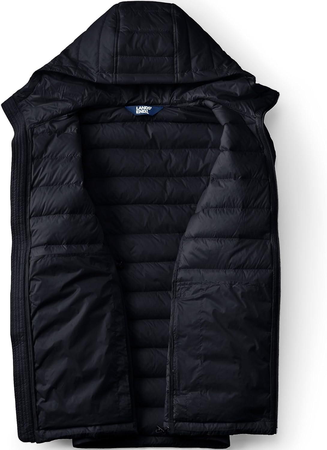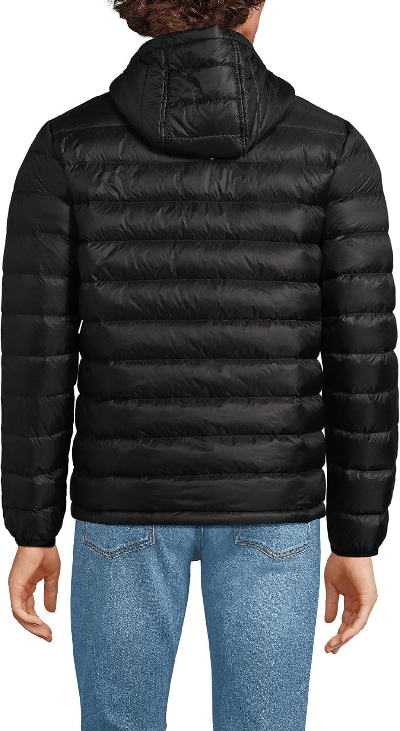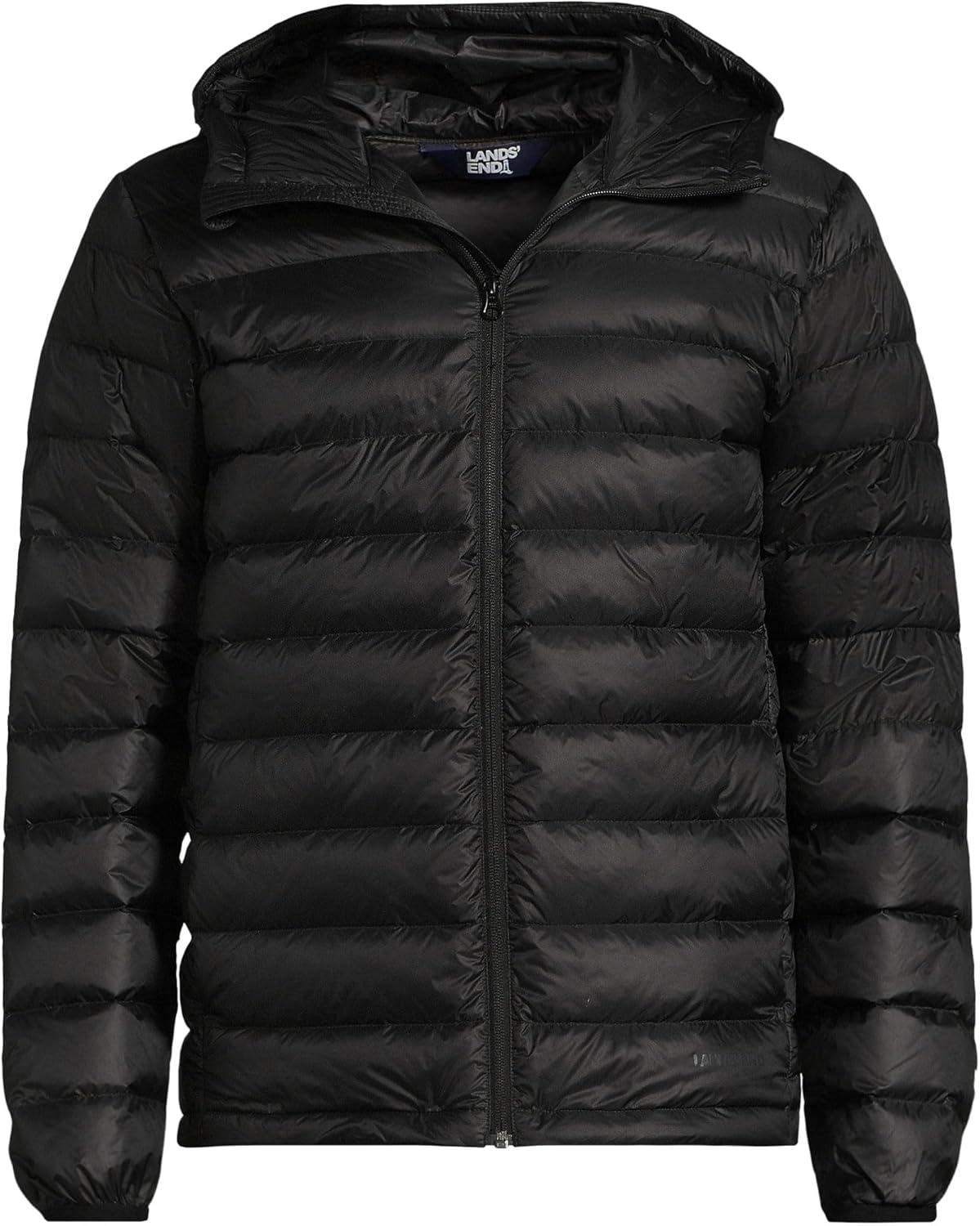 Lands’ End Men’s Wanderweight Ultralight Packable Hooded Down Jacket(Black)