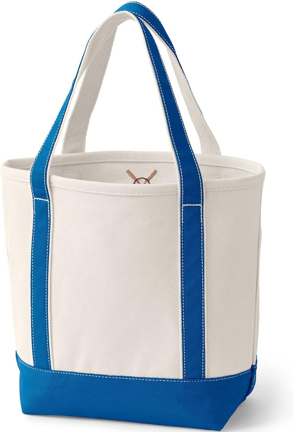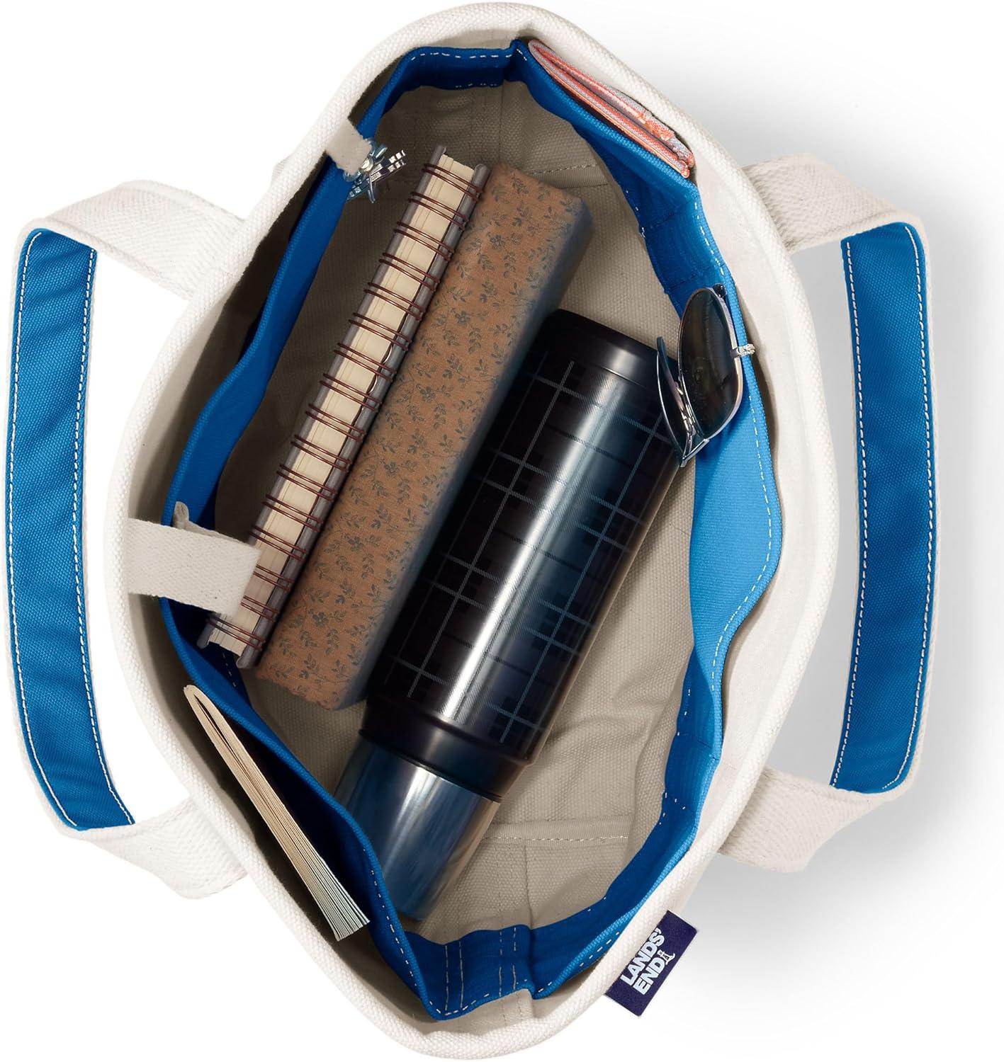 Lands’ End Open Top Canvas Tote Bag(Natural/Beacon Blue)
