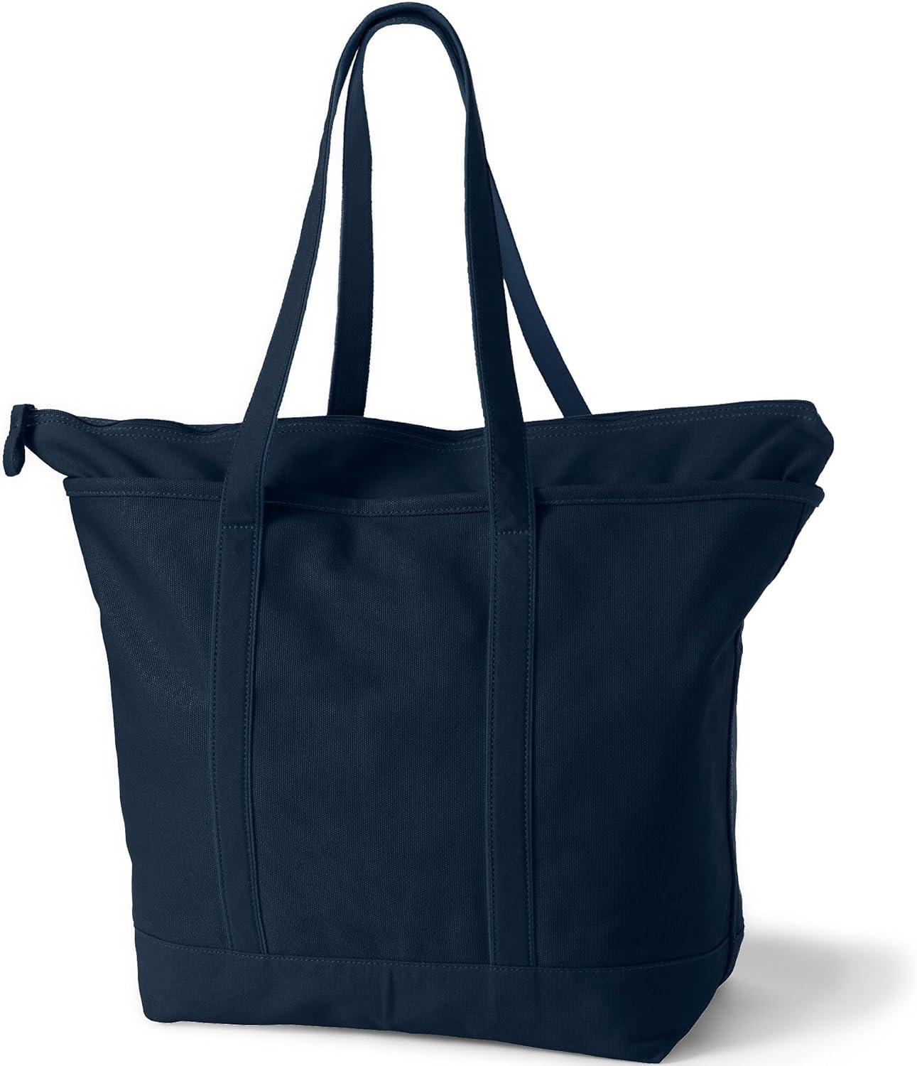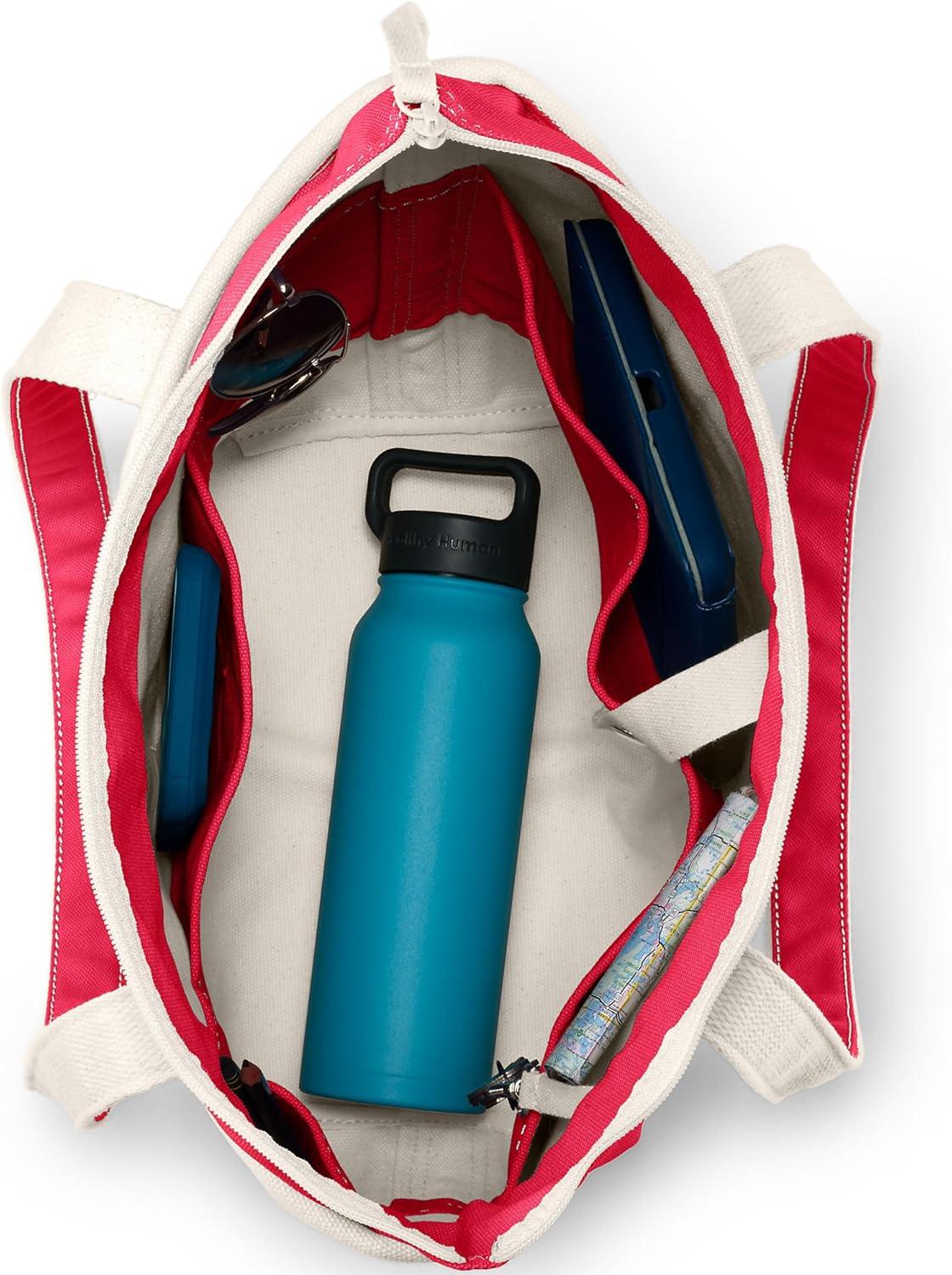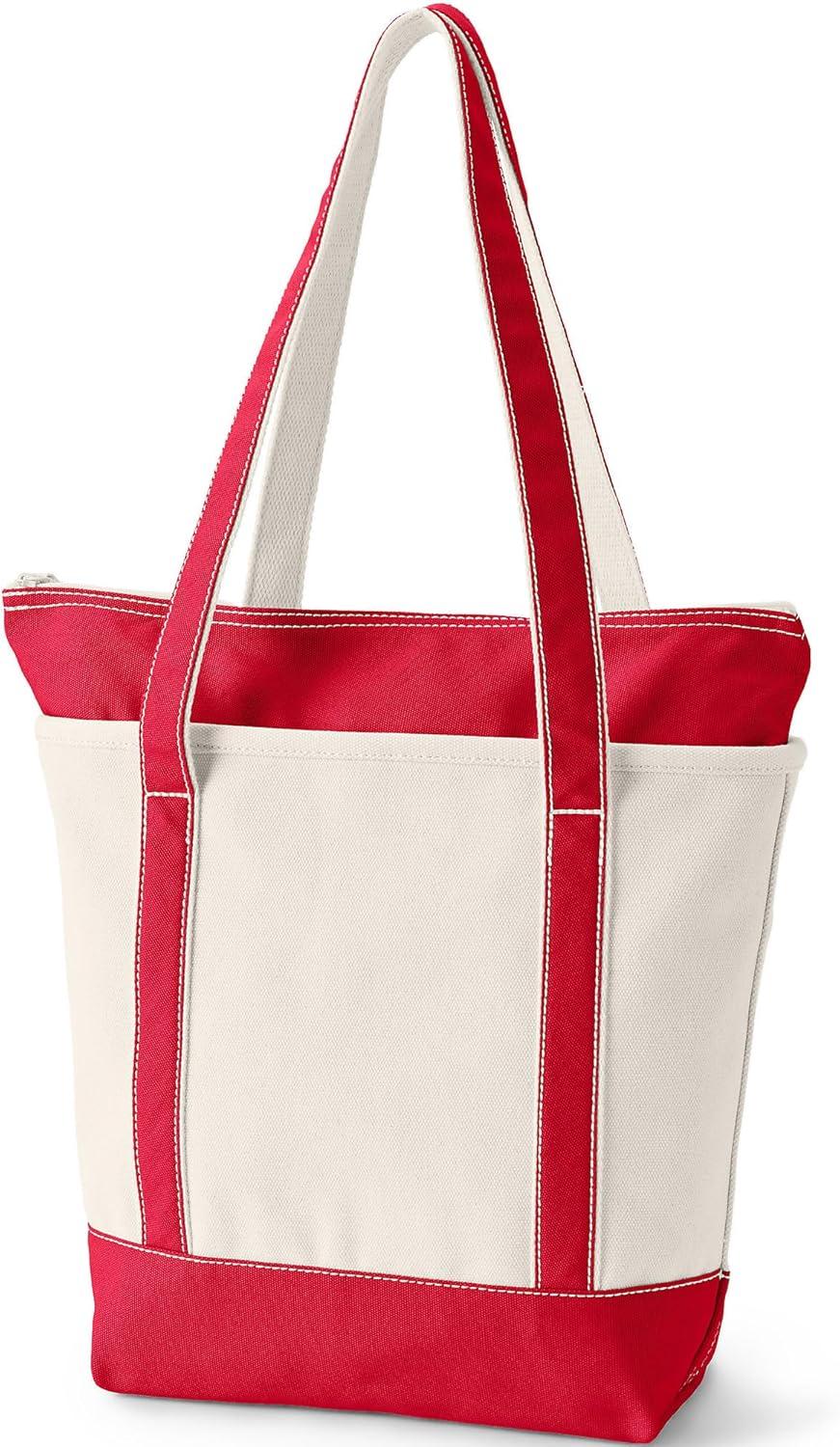 Lands’ End Pre-Monogrammed Letter Canvas Tote Bag(C – Natural/Red)