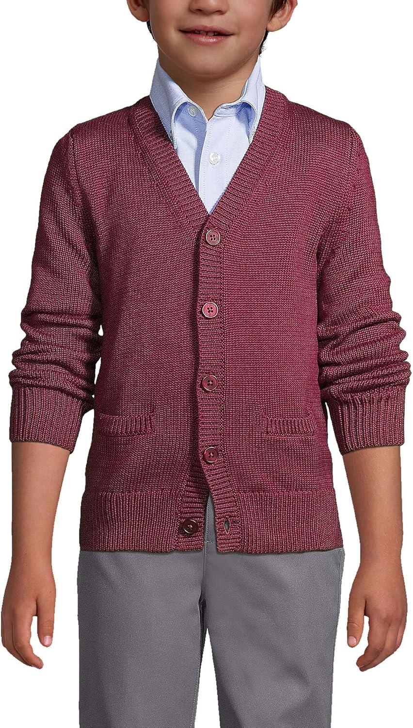 Lands’ End School Uniform Boys Cotton Modal Button Front Cardigan Sweater(Burgundy)