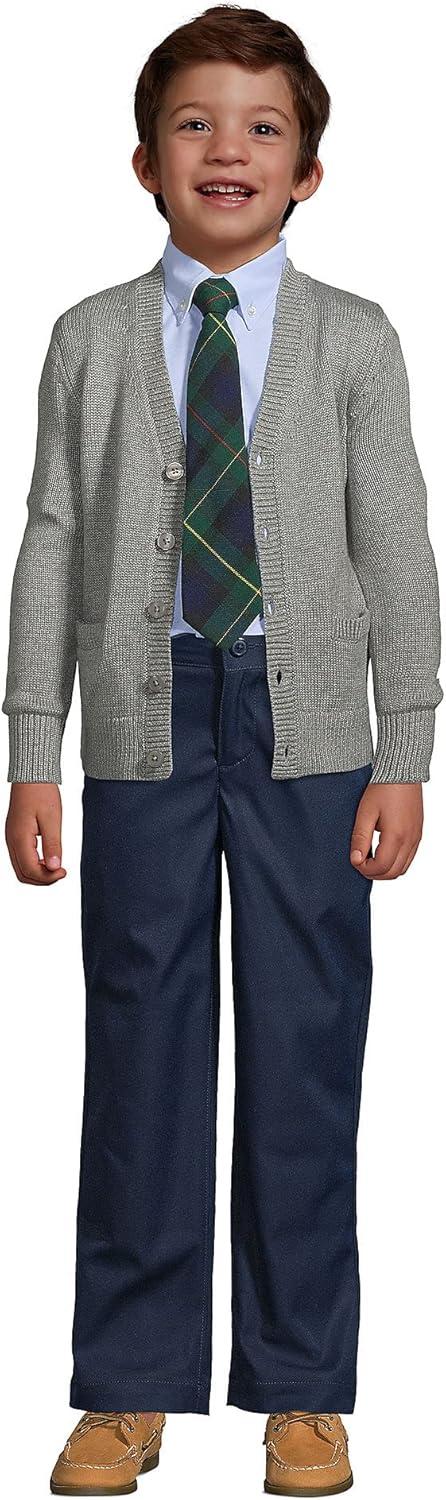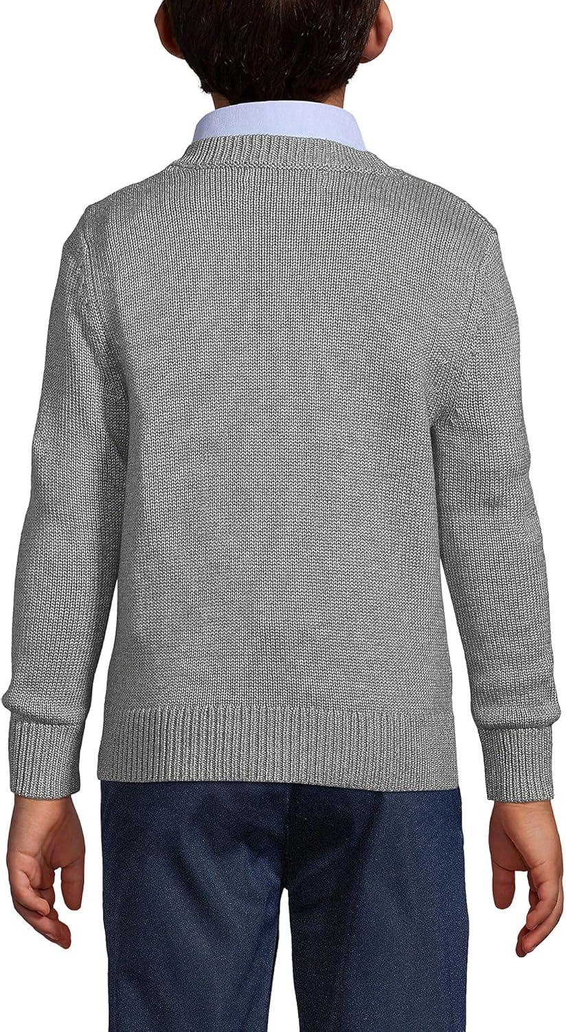 Lands’ End School Uniform Boys Cotton Modal Button Front Cardigan Sweater(Pewter Heather)