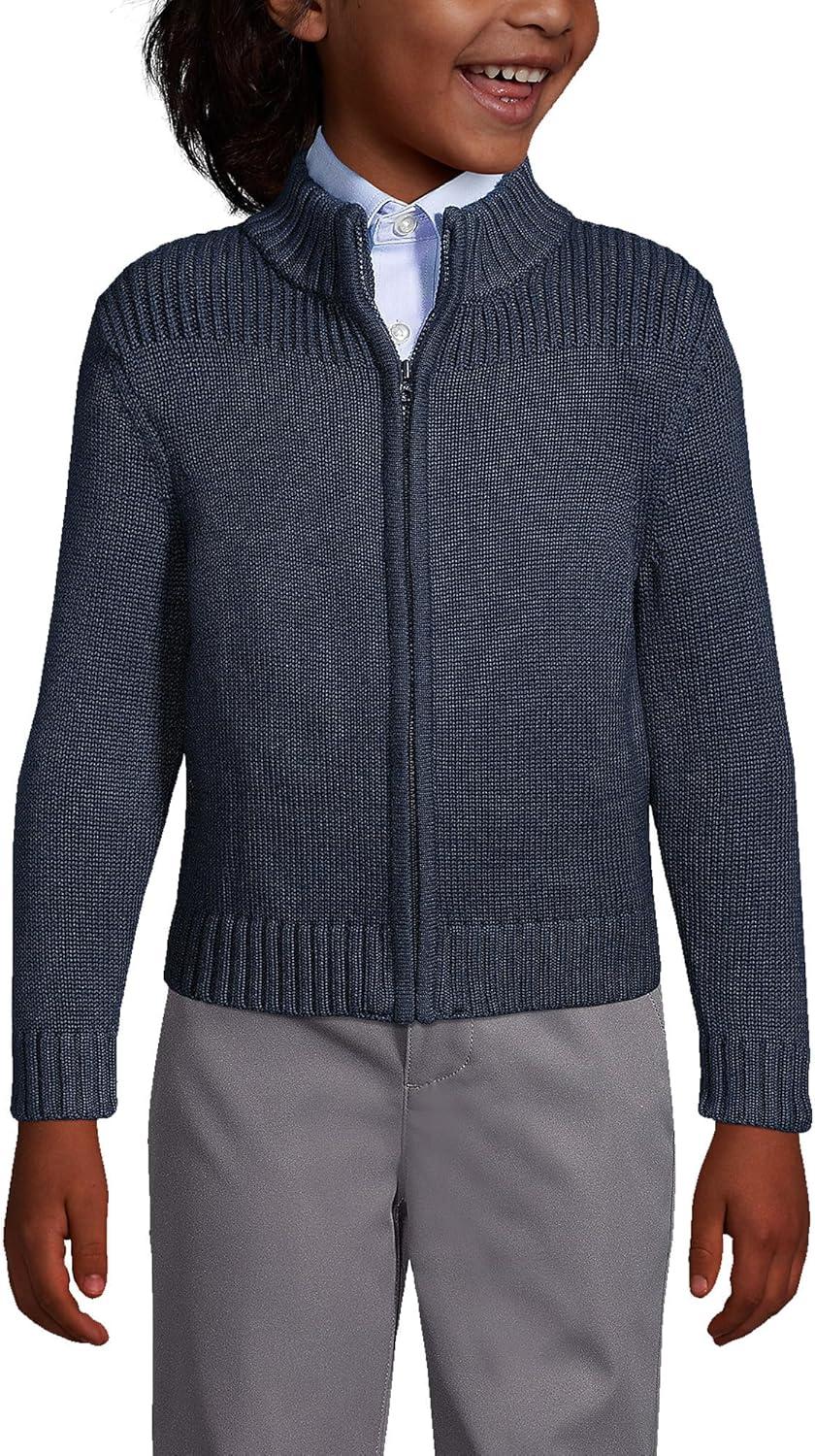 Lands’ End School Uniform Boys Cotton Modal Zip Front Cardigan Sweater(Classic Navy)