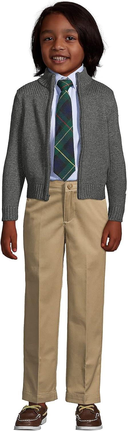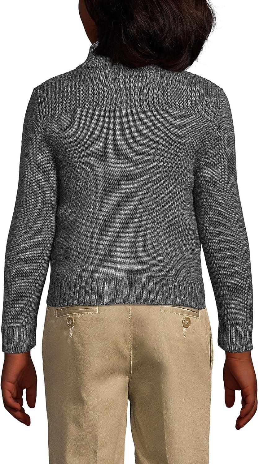 Lands’ End School Uniform Boys Cotton Modal Zip Front Cardigan Sweater(Coal Heather)