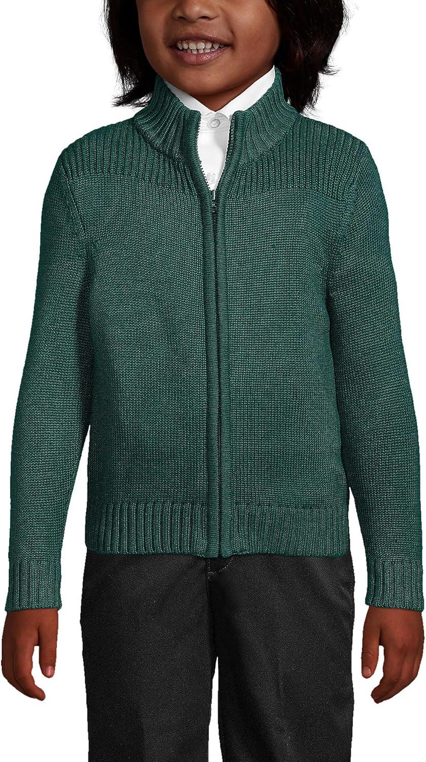 Lands’ End School Uniform Boys Cotton Modal Zip Front Cardigan Sweater(Evergreen)