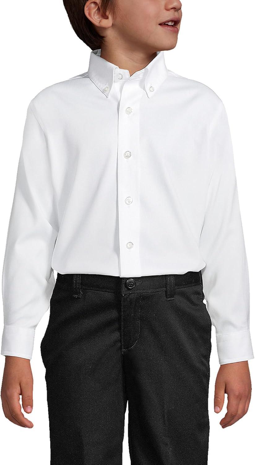 Lands’ End School Uniform Boys Long Sleeve No Iron Pinpoint Dress Shirt(White)