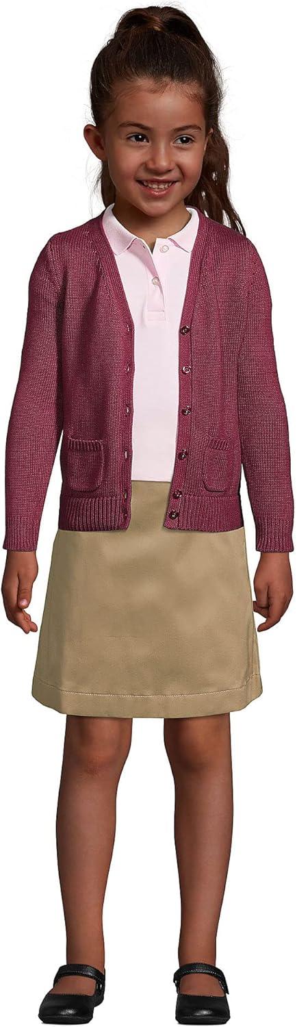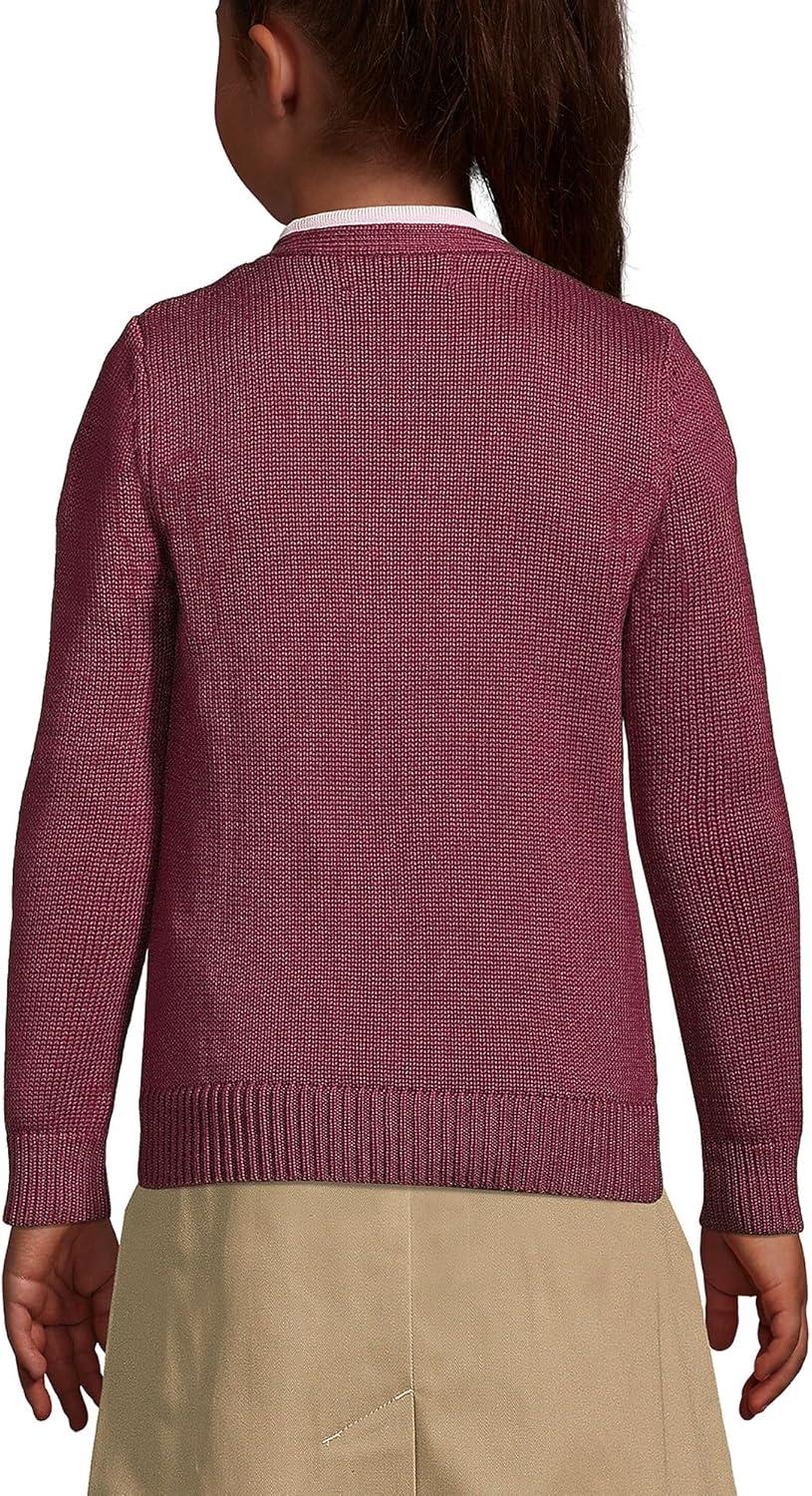 Lands’ End School Uniform Girls Cotton Modal Button Front Cardigan Sweater(Burgundy)