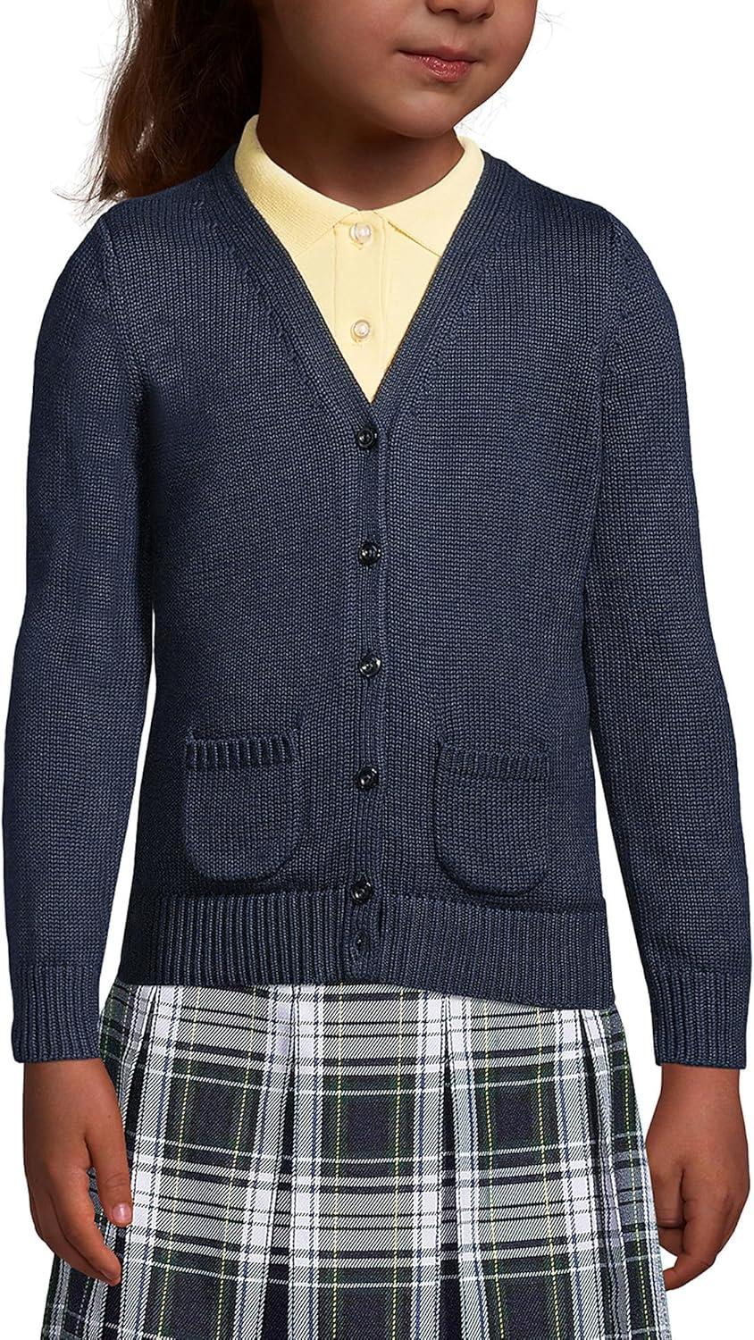 Lands’ End School Uniform Girls Cotton Modal Button Front Cardigan Sweater(Classic Navy)